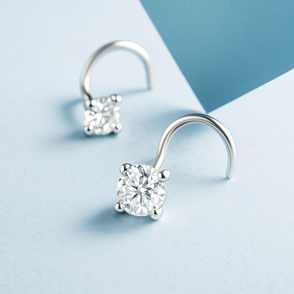 0.10Ct VVS1/F Solitaire Diamond Nose Pin in 18K White Gold