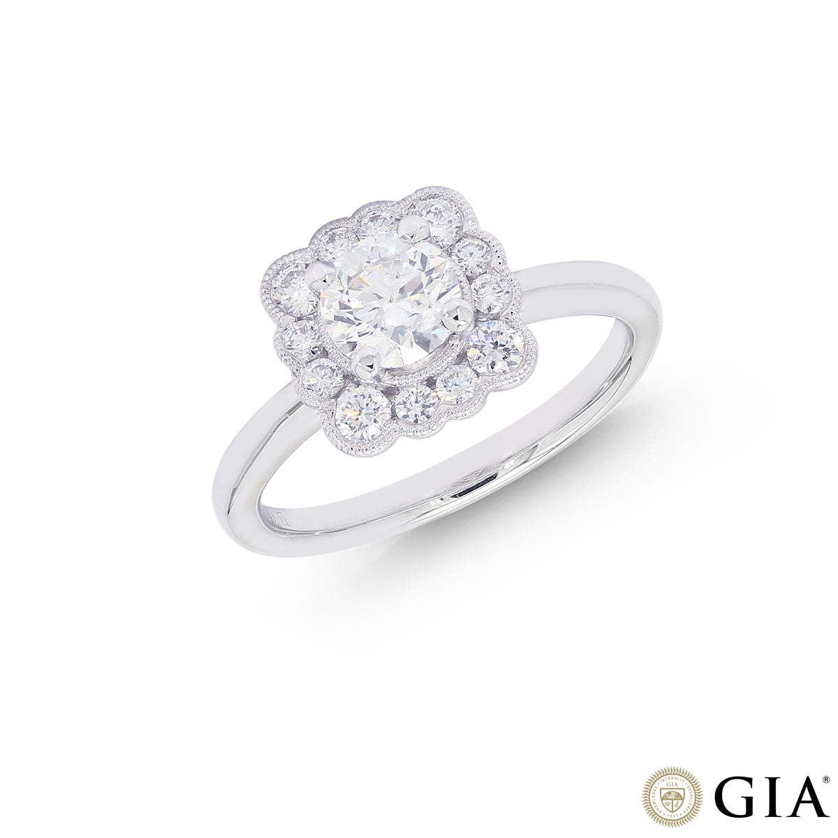 1.10CTW VS1/F GIA Certified Diamond Ring in 18K White Gold