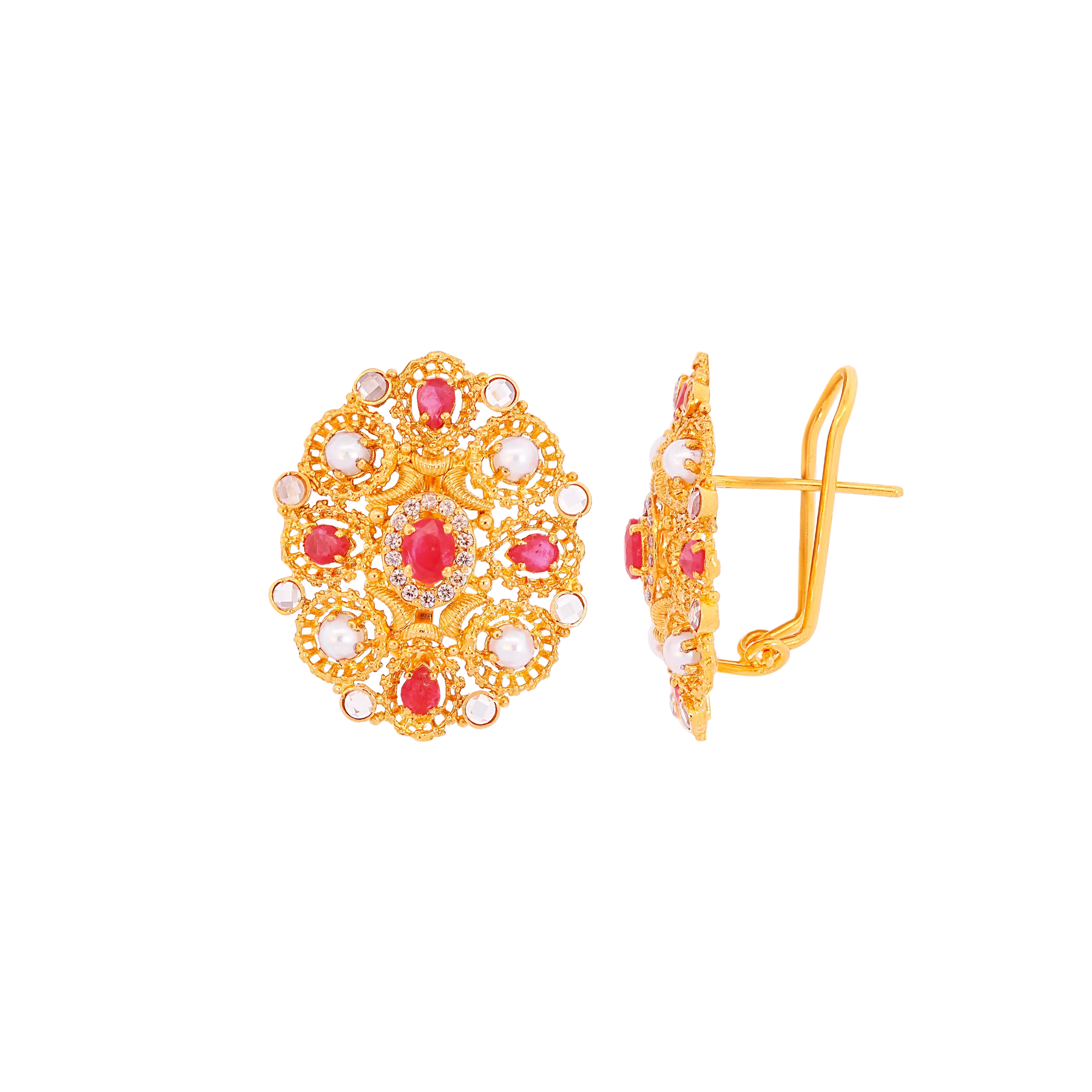 Fascinating Antique Earrings With Ruby, Pearl & Gemstones in 22K Gold
