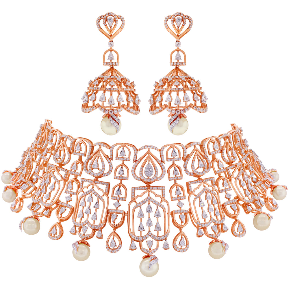 9.47CTW VVS/FG Diamond Choker Set in 18K Rose Gold