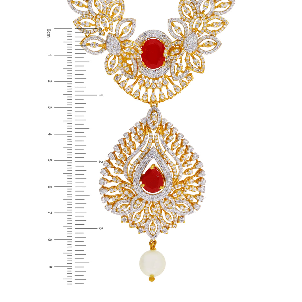 Detailed Necklace Set with Changeable Gemstones in 22K Gold