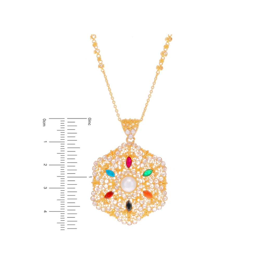 Glamorous Antique Navratan Pendant Set With Polki in 22K Gold