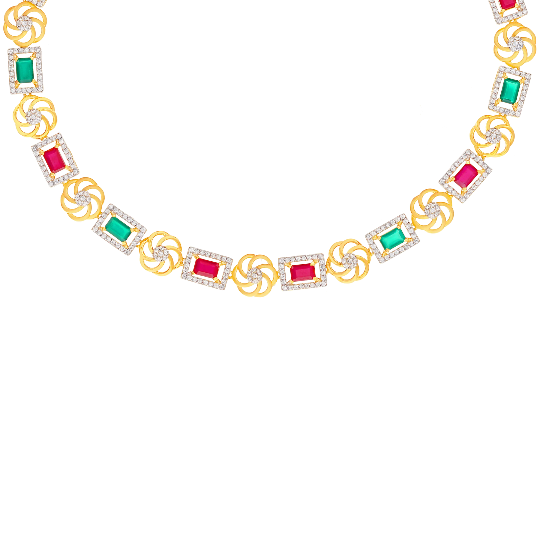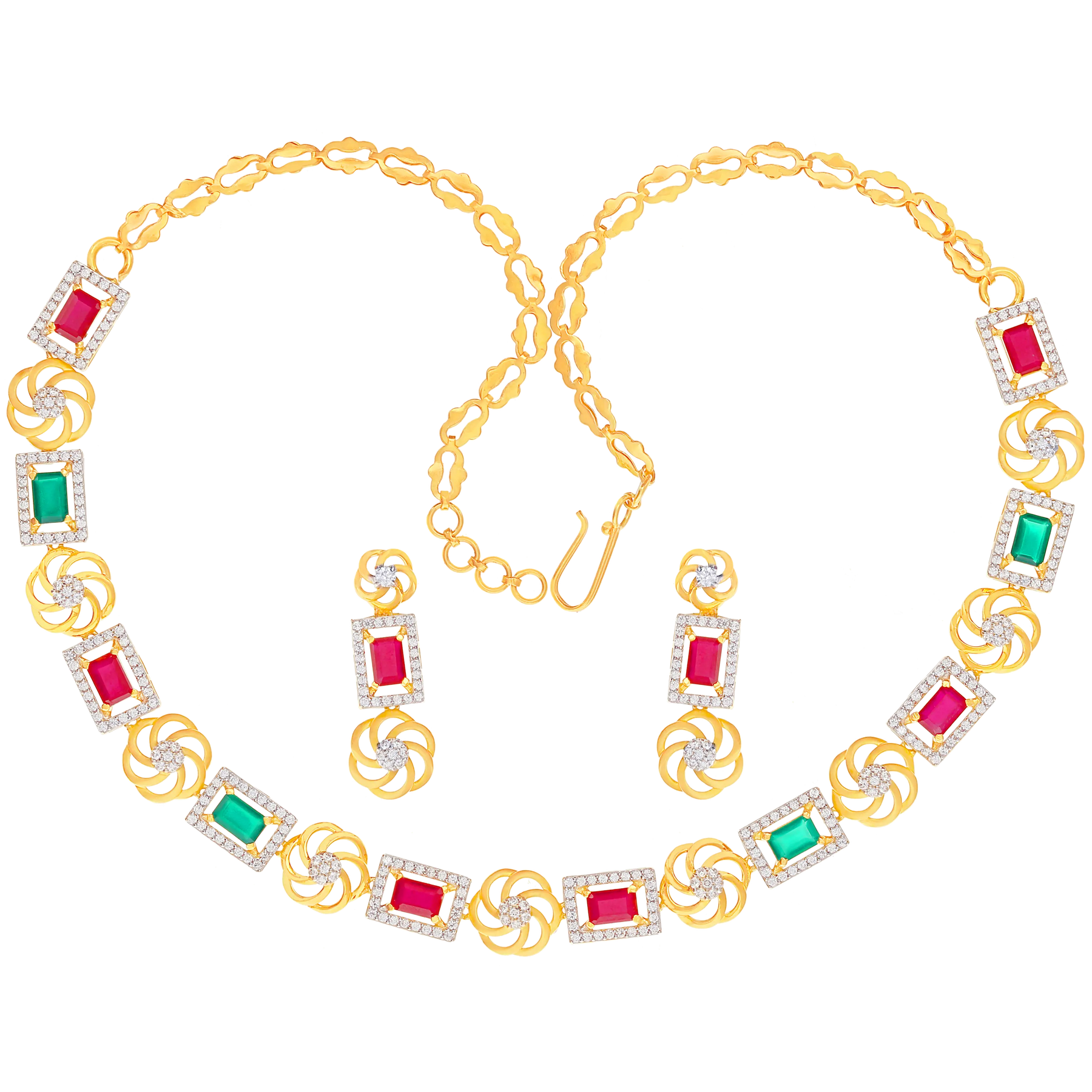 Ravishing Necklace Set with CZ & Gemstone in 22K Gold