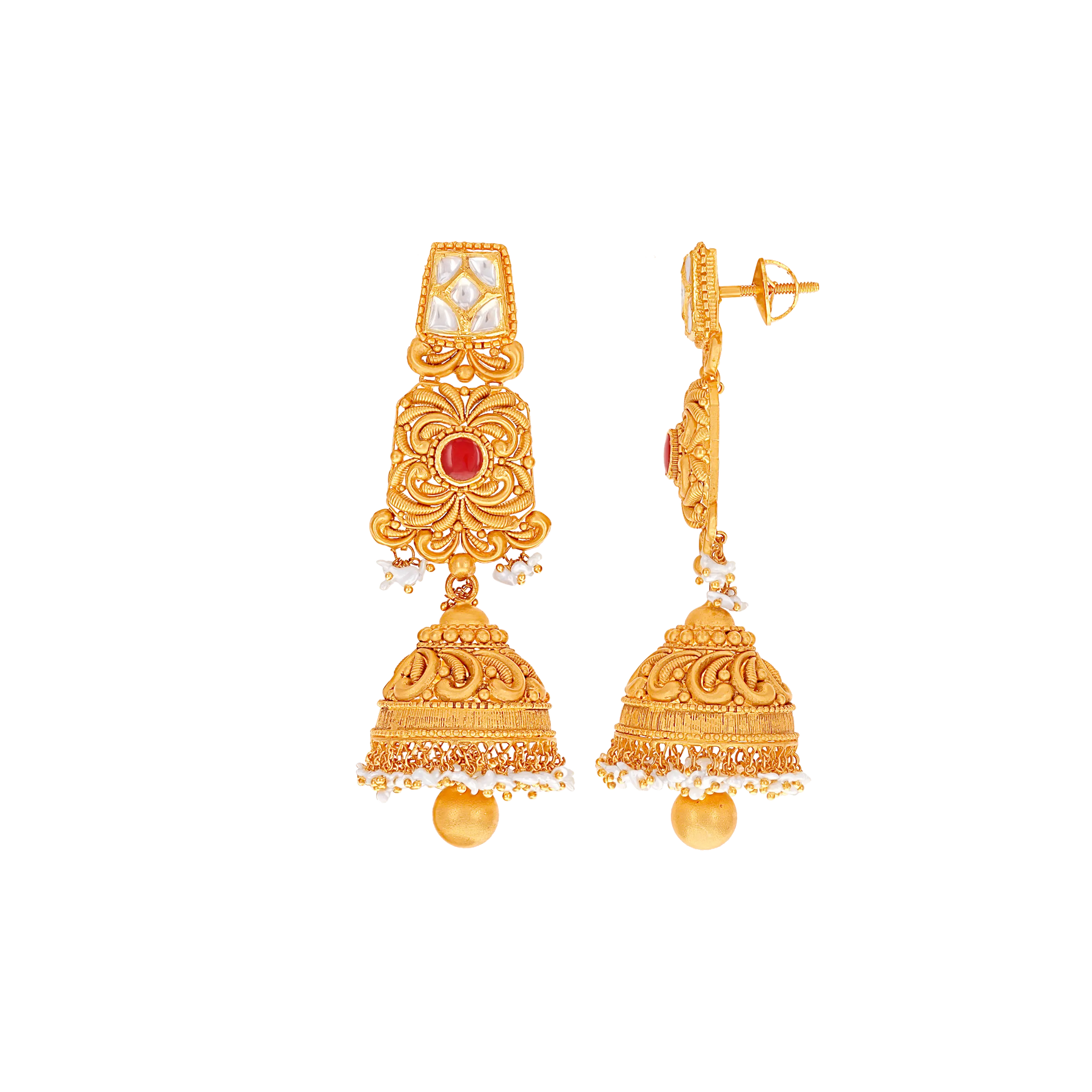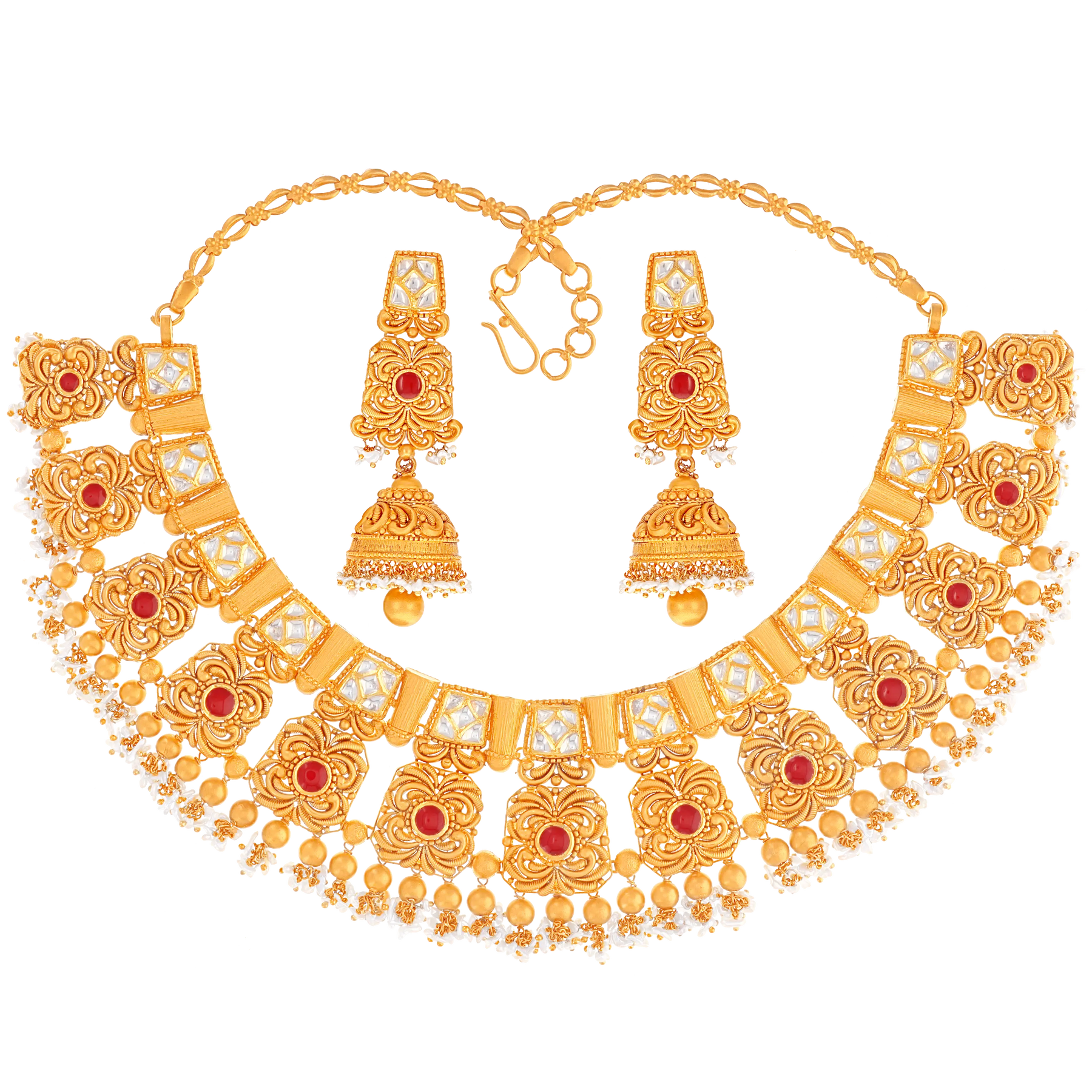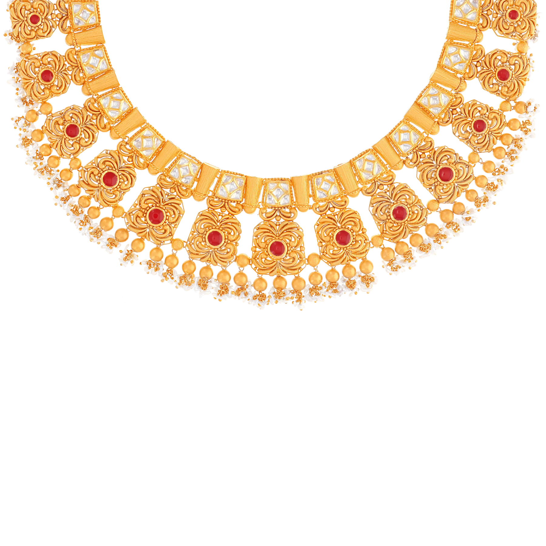 Intricate Antique Necklace Set With Kundan & Gemstones in 22K Gold