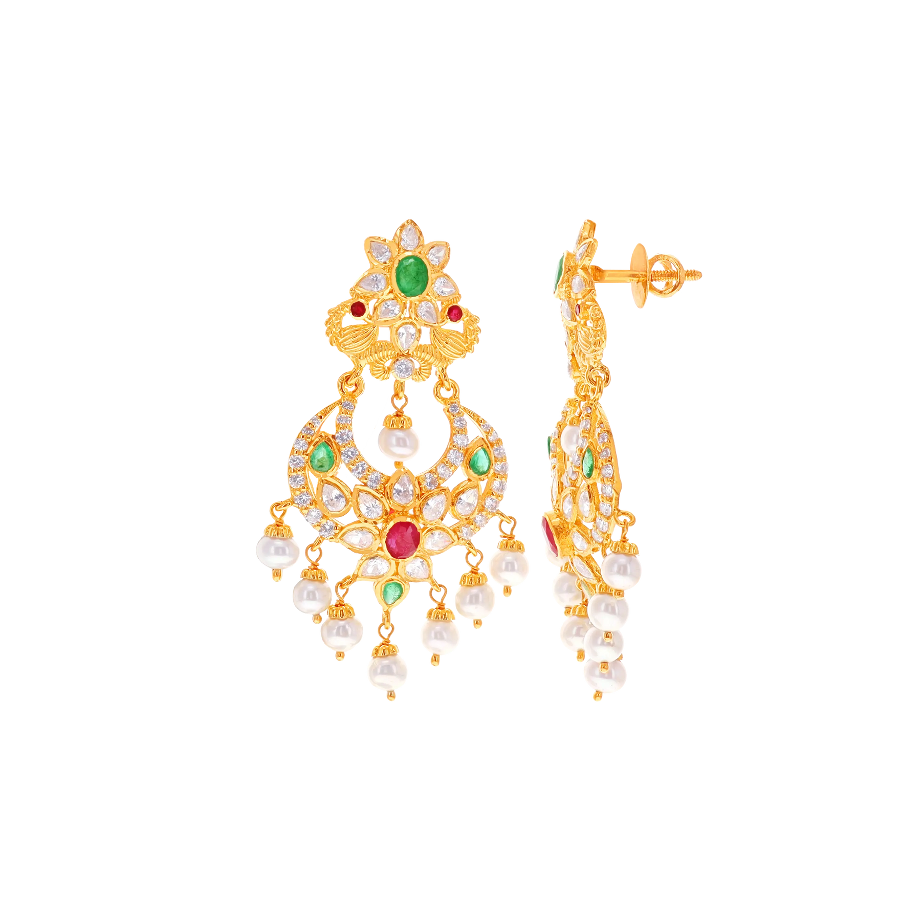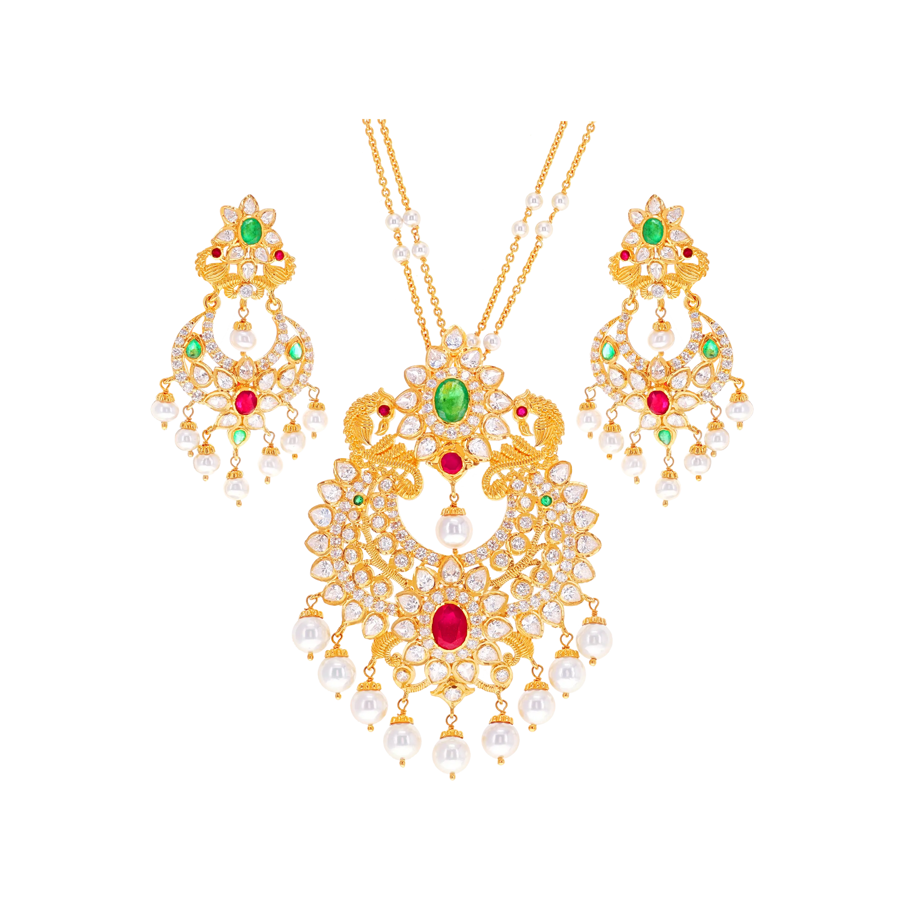 Lovely Pendant Set with Ruby, Emerald, Pearl & CZ in 22K Gold