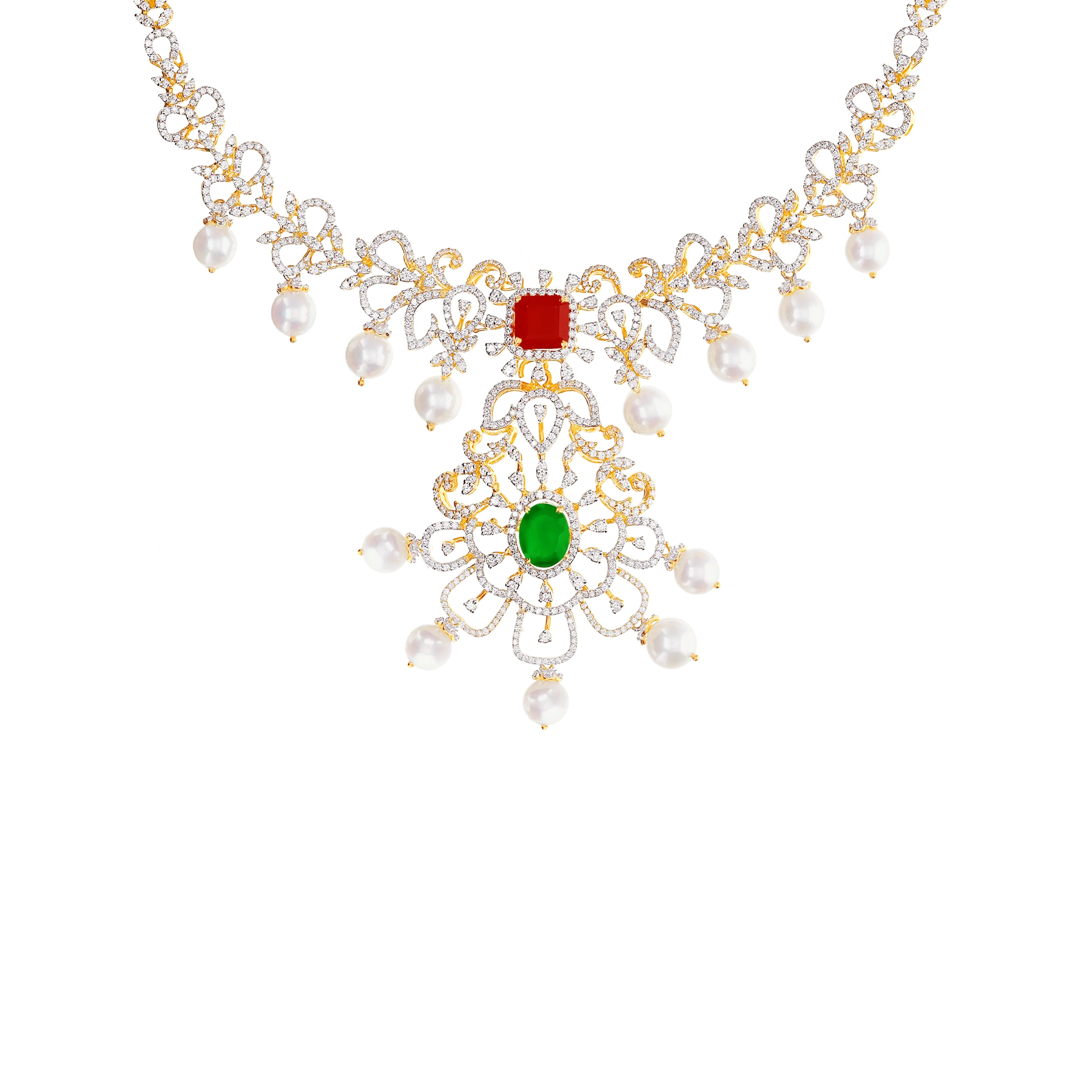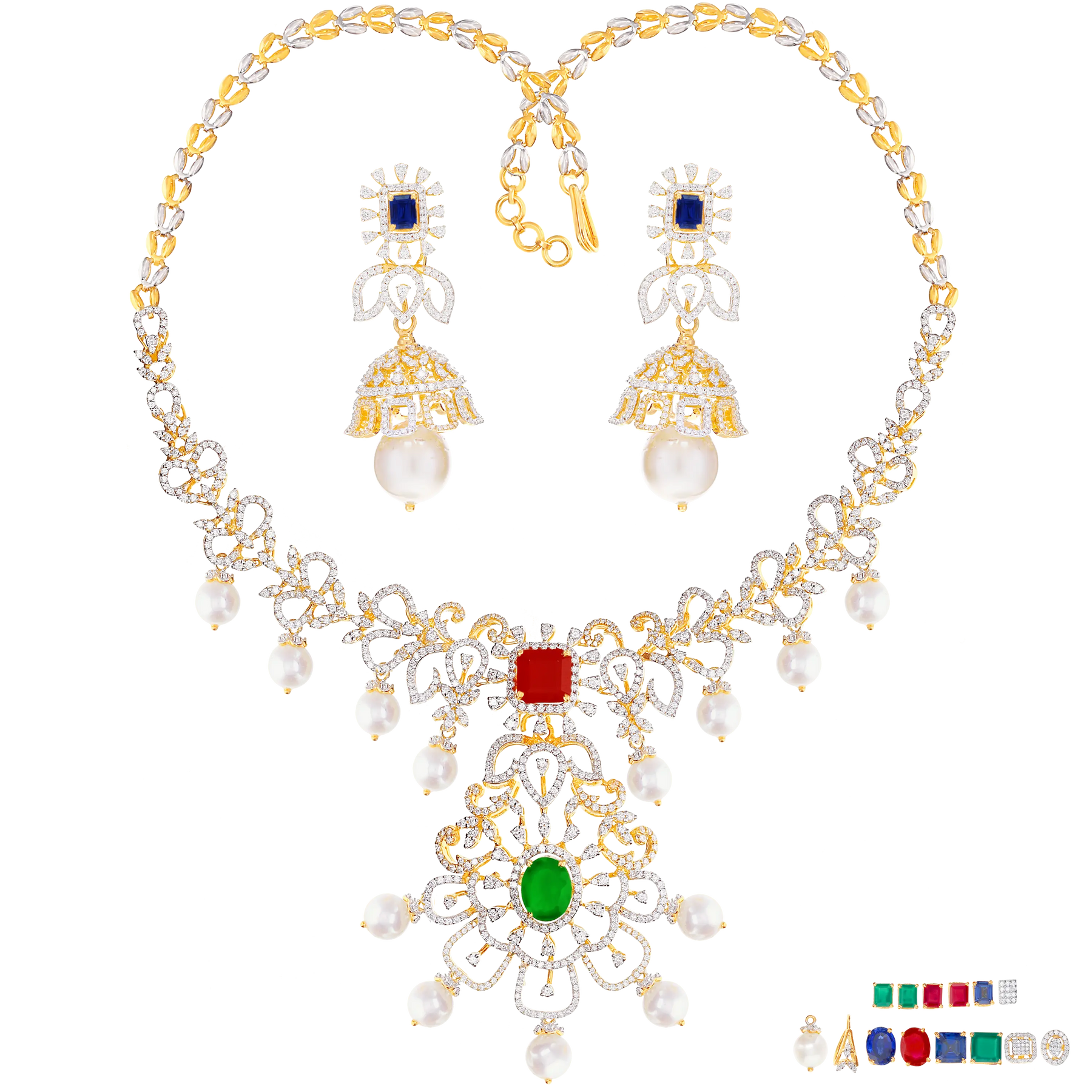 8.97Ct VVS/EF Diamond Necklace Set With Changeable Gemstones in 18K Gold