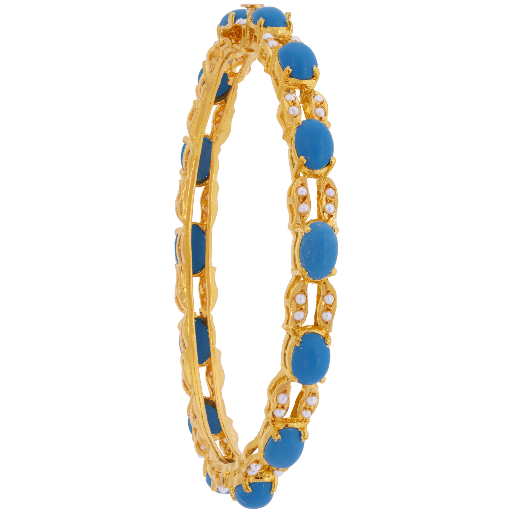 2.5 Size Set of 2pcs Openable Bangles with Turquoise & Pearl in 22K Gold