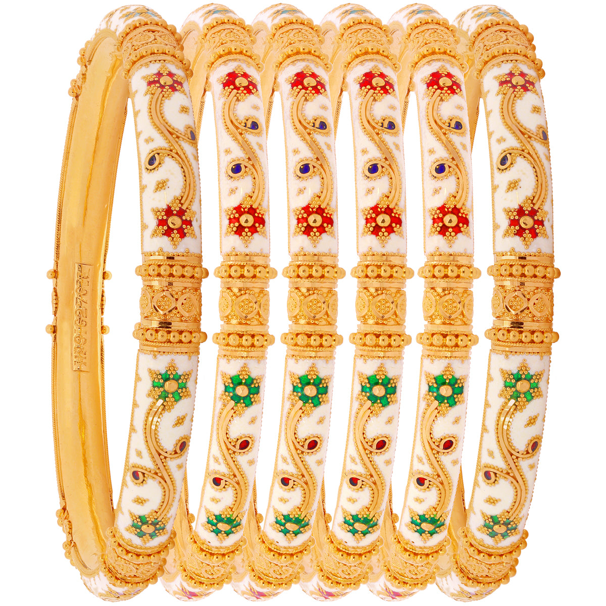 2.7 Size Minakari Pipe Set Of 6Pcs Bangles in 22K Gold