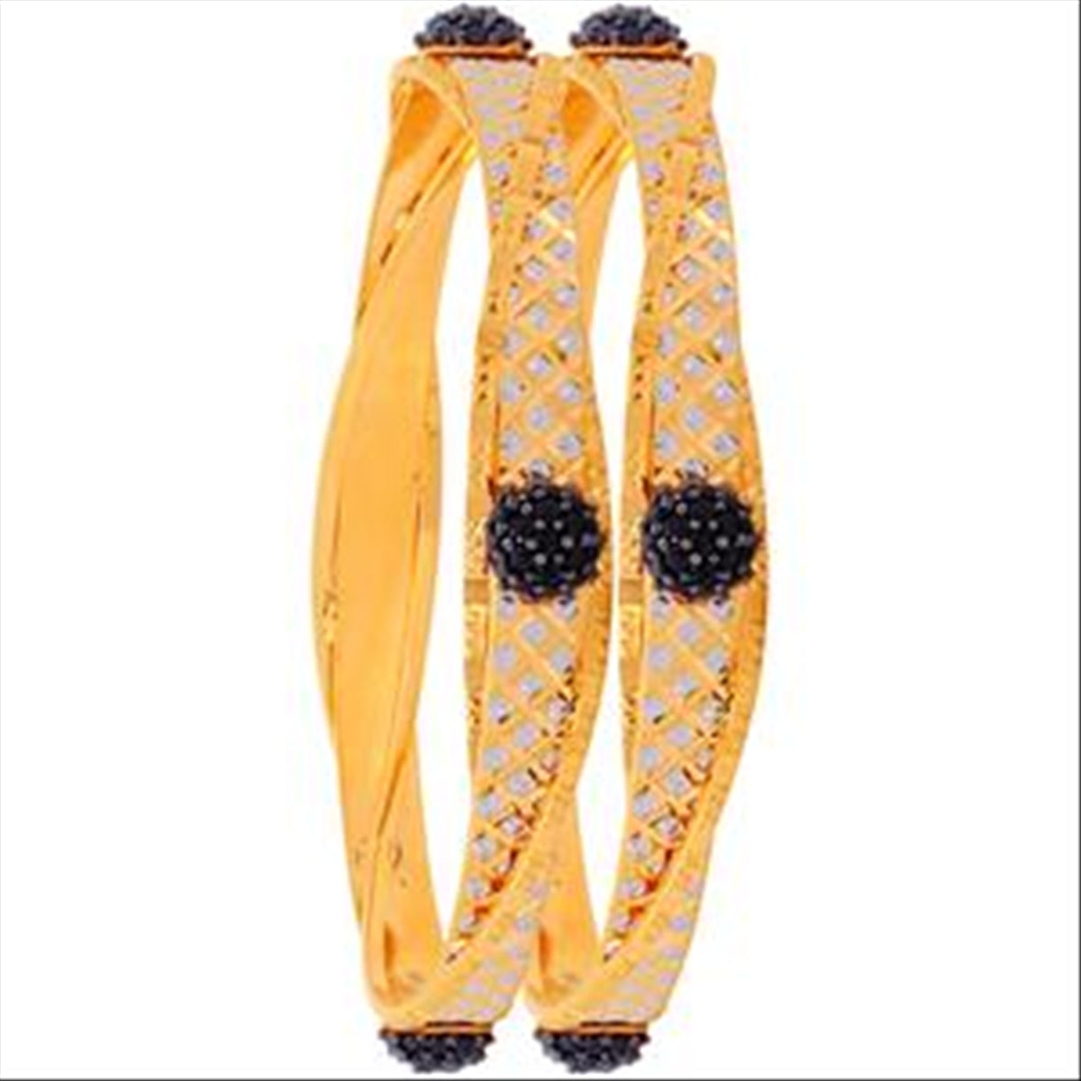 2.8 Size Two tone Set Of 2pcs Bangles With CZ in 22K Gold