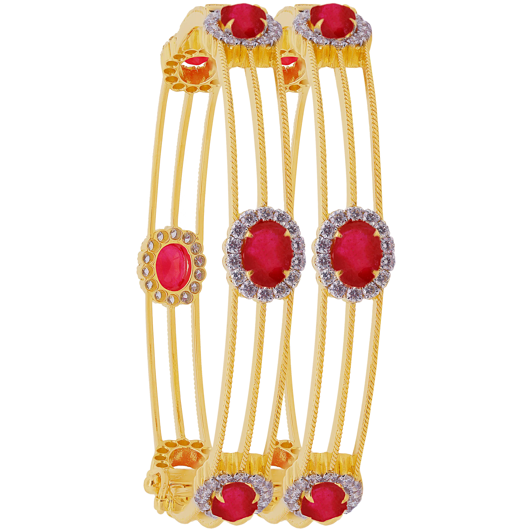 3.77Ct VS/GH Diamond Set Of 2pcs Bangles with Ruby in 18K Gold