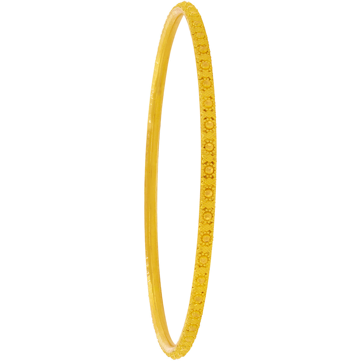 Add a touch of elegance to your outfit with these stunning 2.10 size set of 6pcs bangles made of 22K yellow gold. The perfect jewelry for women who love to stand out these bangles are designed to complement any attire be it traditional or modern. With a gross weight of 65.8 these bangles are crafted to perfection in a high-quality finish that doesn't fade away with time. The bangle size is 2.10 with a width of 0.11 making it an ideal fit for most women. Made of 22KG gold these bangles are carefully crafted to perfection ensuring they last a lifetime. They come in a set of 6 giving you the freedom to mix and match them with other jewelry pieces. The brand Malani Jewelers is synonymous with quality making these bangles a perfect gift for a loved one or a treat to oneself. Enhance your jewelry collection with this beautiful set of bangles from Malani Jewelers!