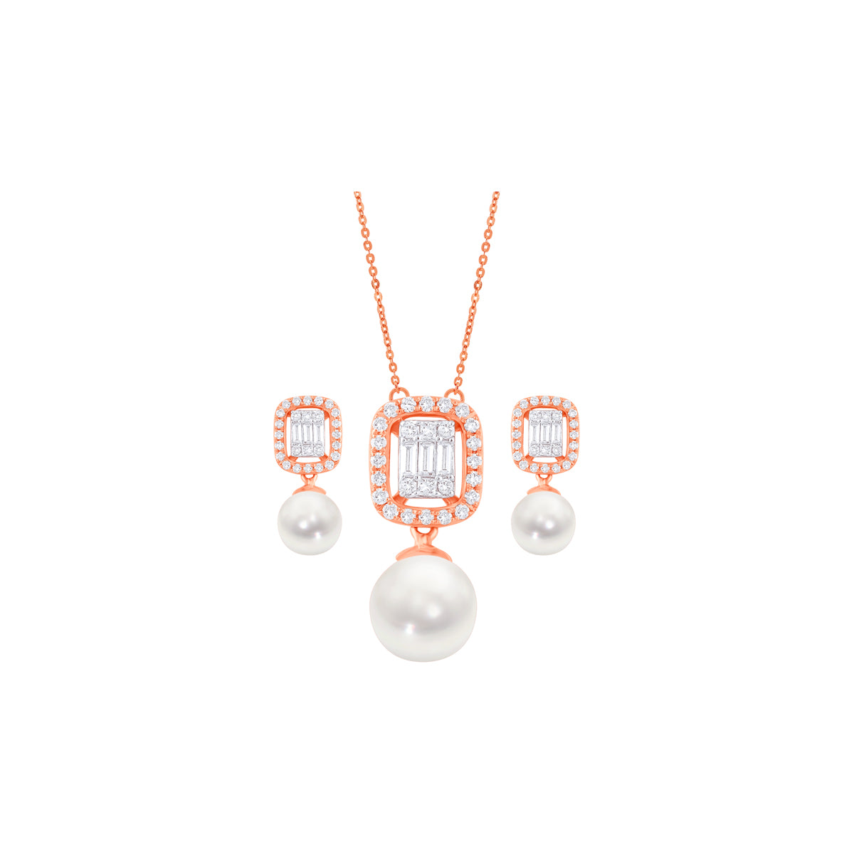 Discover the exquisite craftsmanship of Malani Jeweler with our 0.65Ct VVS/FG Diamond Pendant Set crafted in 18K rose gold. This elegant women’s jewelry set belongs to the Pendant Sets category and features 85 sparkling white diamonds with exceptional VVS clarity and F-G color. The pendant measures 0.76 inches in length and 0.34 inches in width while the earrings are 0.69 inches long and 0.29 inches wide complete with secure screw-back posts. The total gross weight is 8.7 grams. The included chain complements the set's beautiful rose finish. Each piece in this stunning ensemble is designed to enhance your style and elegance making it a perfect addition to any jewelry collection. Perfectly balancing luxury and sophistication this Malani Jeweler set is ideal for those who appreciate finely crafted diamond jewelry.