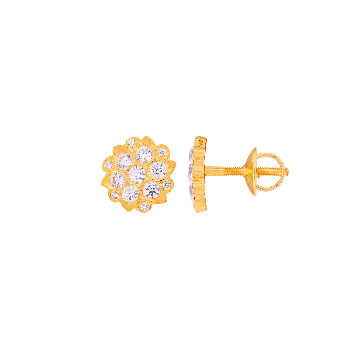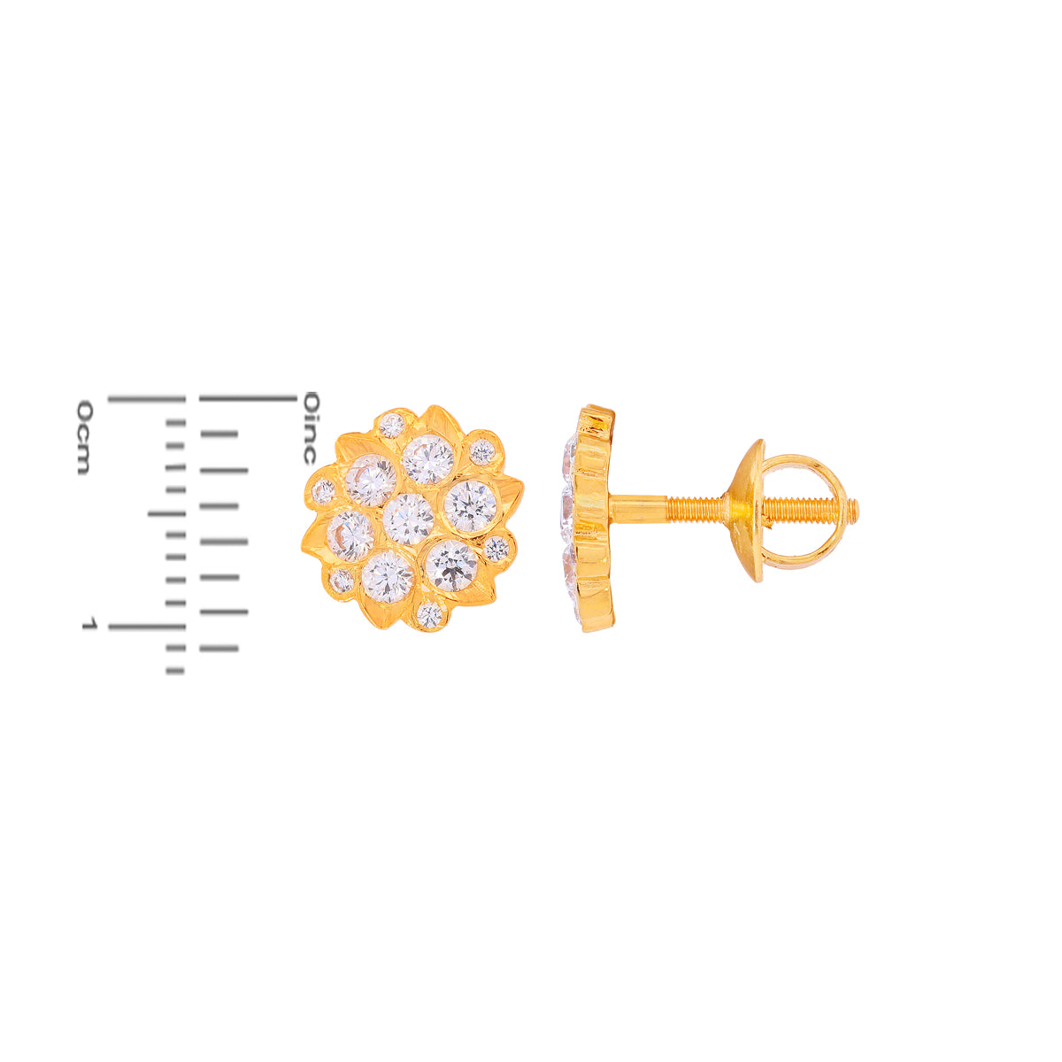 Discover the exquisite artistry of the Artistic Earrings with CZ by Malani Jeweler crafted to perfection in 22K yellow gold. These elegant earrings are a part of the Women's Tops collection reflecting sophistication and timeless elegance. With dimensions of 0.41 inches in both length and width they are designed to provide a perfect blend of style and comfort making them ideal for any occasion. The earrings feature a screw-back post type ensuring a secure fit. They offer a luxurious feel without being cumbersome. These earrings embody Malani Jeweler's commitment to quality and design. Whether you're searching for a standout piece or a refined addition to your jewelry collection these earrings shine with the brilliance of cubic zirconia (CZ) stones. Let these yellow gold earrings enhance your beauty and make a lasting impression wherever you go.