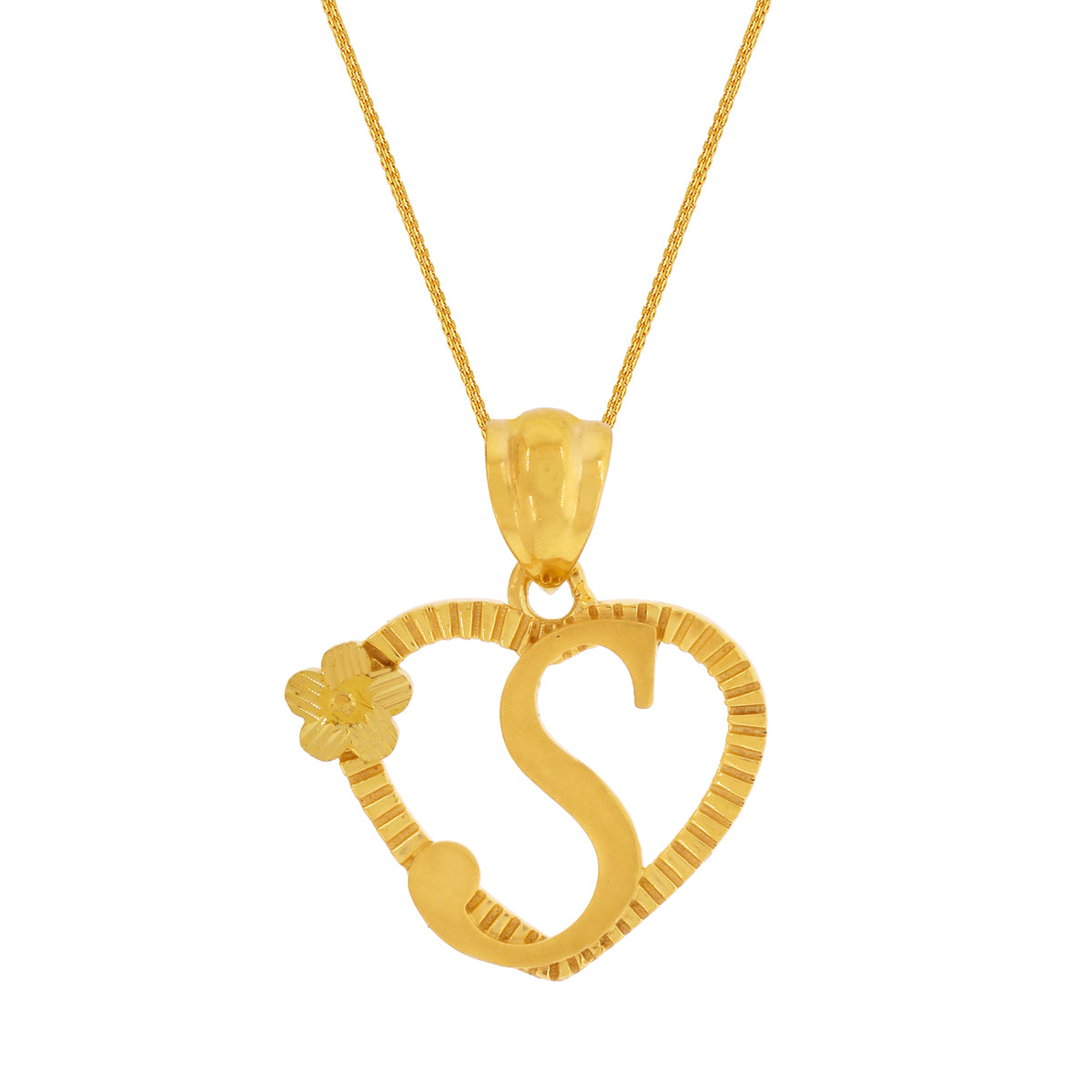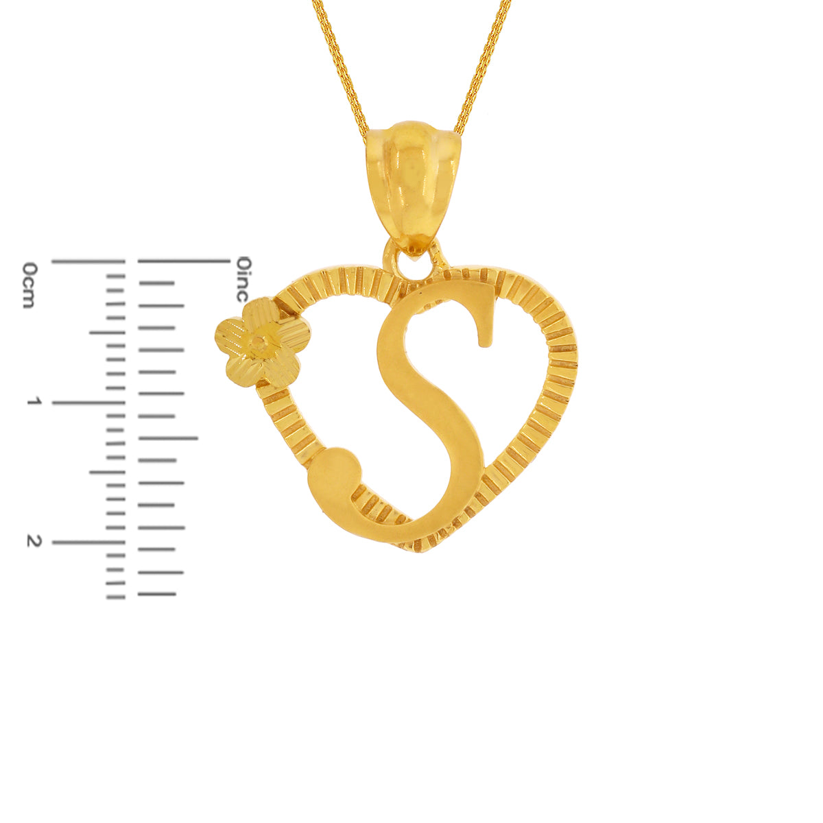 Introducing the exquisite Initial "S" Heart Pendant by Malani Jewelers a breath taking piece crafted in luxurious 22K gold. This elegant pendant perfect for women who adore gold jewelry boasts a sophisticated yellow finish. Measuring 0.93 inches in length and 0.8 inches in width it's thoughtfully designed to capture attention. This pendant exhibits the perfect blend of weight and grace making it a timeless addition to any collection. Crafted with precision and passion this Malani Jewelers pendant is the epitome of elegance in the "S" initial design symbolizing style and sentiment. Perfect for any occasion this pendant enhances your neckline adding a touch of personal charm and elegance. While the chain is not included this stunning pendant offers endless pairing options with your favorite chains. Discover the allure of this pendant—an ideal choice for gifting or self-indulgence. Embrace the artistry and tradition of Malani Jewelers with this captivating 22K gold pendant.