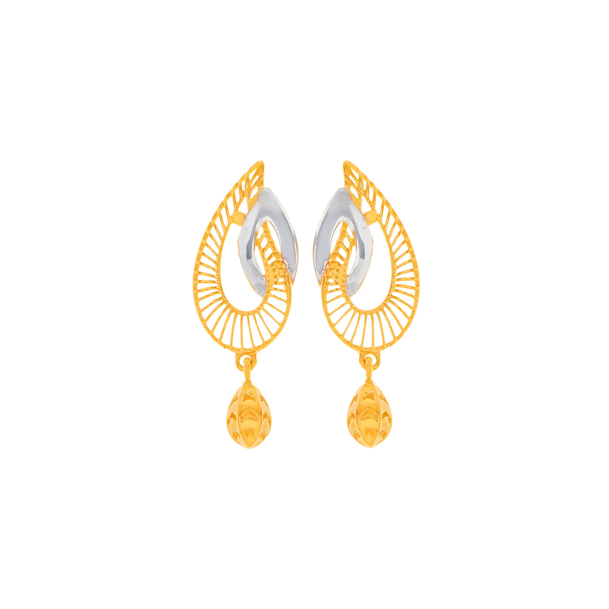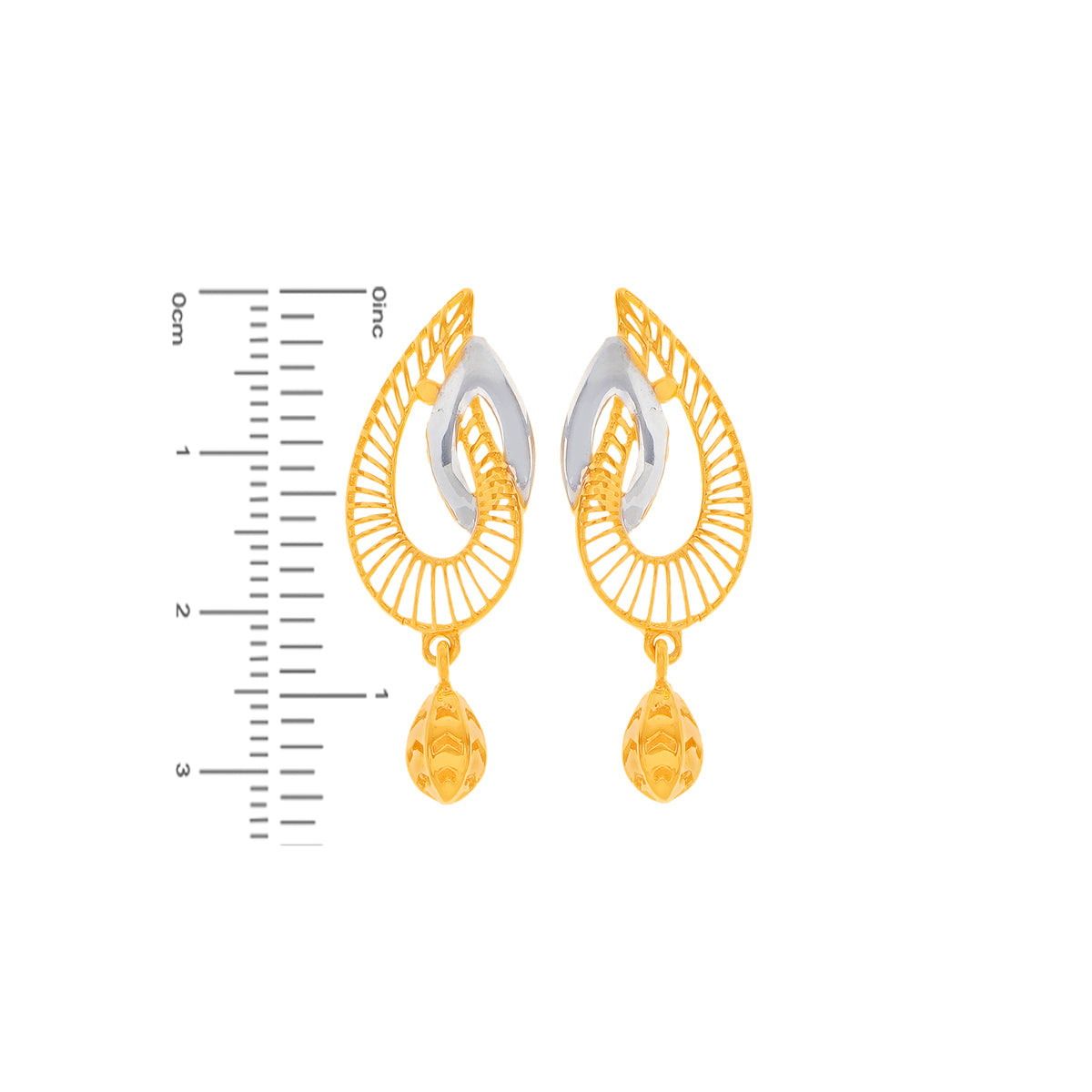 Introducing the 22K Gold Two-Tone Earrings by Malani Jeweler a timeless piece designed for women. These earrings showcase a sophisticated two-tone finish perfectly blending classic appeal with modern style. Crafted with 22KT gold they feature a length of 1.05 inches and a width of 0.37 inches making them an elegant choice for any occasion. Weighing 3.3 grams these earrings are lightweight for all-day wear. The secure screw-back post ensures a comfortable fit. Enhance your jewelry collection with this chic pair from Malani Jeweler’s Women's Earrings collection. SKU: 79-30952. Made for those who appreciate fine gold craftsmanship.