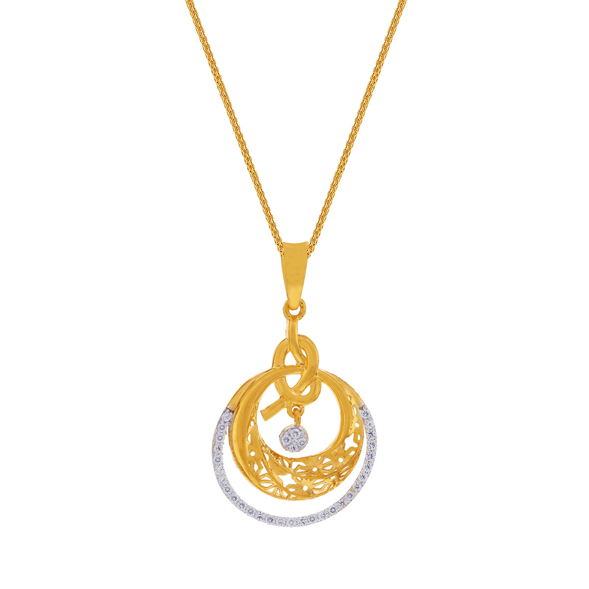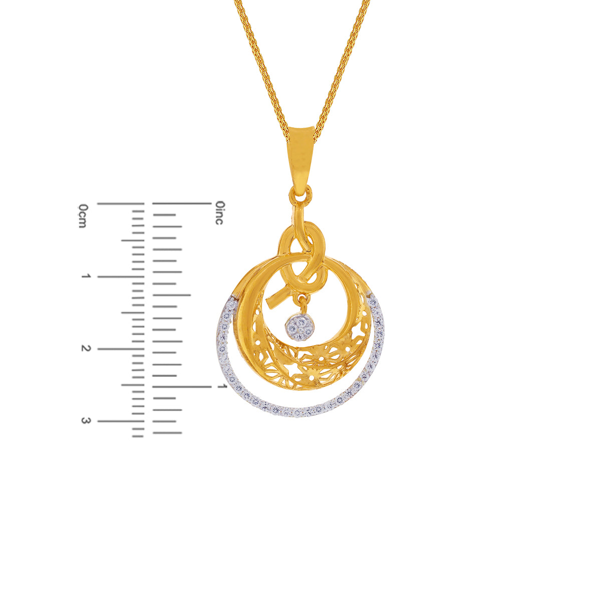 Introducing the exquisite Charming Two Tone Pendant with CZ in 22K Gold by Malani Jeweler a perfect embodiment of elegance and sophistication for women. Crafted with the finest 22KT gold this stunning piece radiates with a polished two-tone finish making it a versatile addition to any jewelry collection. The pendant measures an elegant length of 1.33 inches and a width of 0.77 inches ensuring a comfortable yet striking presence. Ideal for any occasion this yellow gold pendant features delicate cubic zirconia accents that add a subtle sparkle and charm. Every detail of this pendant reflects Malani Jeweler's commitment to quality and craftsmanship. Perfect for those searching for an exquisite gold pendant to complement their style making it easy for jewelry enthusiasts to find. Discover timeless beauty with Malani Jeweler's stunning pendant collection.