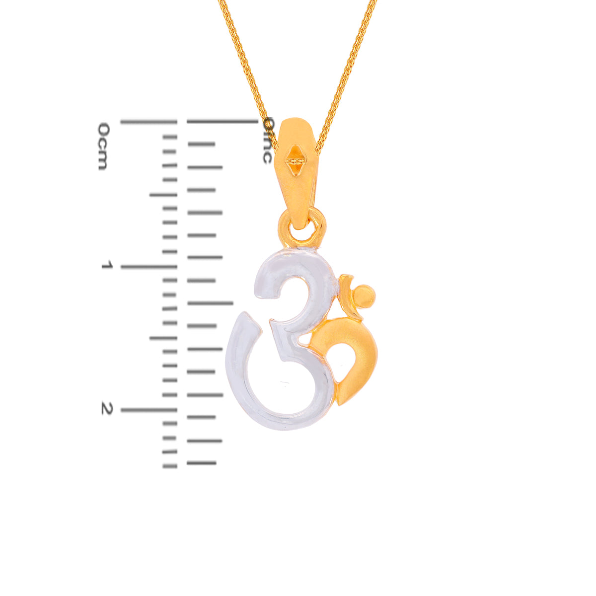 Discover the exquisite craftsmanship of Malani Jeweler with the Om Two Tone Pendant in 22K Gold. Perfectly suited for unisex style this luxurious pendant features a refined two-tone finish adding a modern twist to traditional elegance. Measuring 0.86 inches in length and 0.42 inches in width it is designed to make a subtle yet impactful statement. The pendant is crafted from high-quality 22KT gold ensuring both durability and sophistication. The striking yellow color highlights the intricate Om design embodying spiritual significance and style. Although the chain is not included this versatile piece can be easily paired with your favorite necklace or chain. Ideal for those seeking a unique addition to their jewelry collection this pendant is a beautiful representation of Malani Jeweler's dedication to superior quality and timeless design. Perfect for any occasion enhance your look with this exquisite gold pendant today.