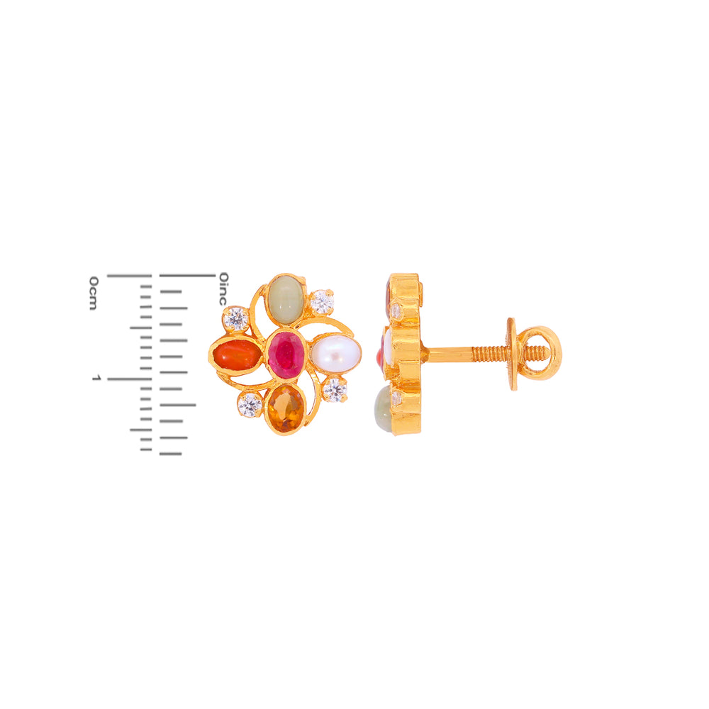 Enchanting Earrings With Navratan in 22K Gold