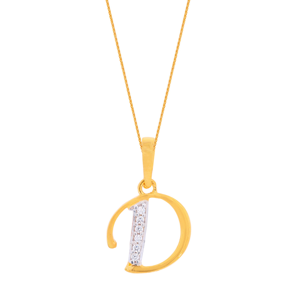 Initial "D" Two tone Pendant With CZ in 22K Gold