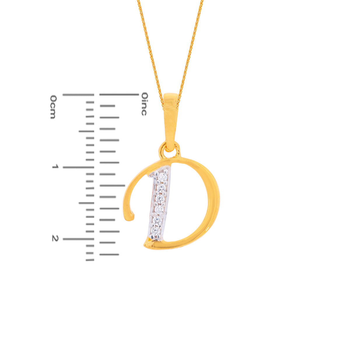 Discover the elegant charm of the Initial "D" Two Tone Pendant by Malani Jeweler crafted in exquisite 22K gold. This sophisticated piece is designed for both men and women making it a versatile addition to any jewelry collection. The pendant features a striking two-tone finish enhancing its visual appeal and aligning with contemporary fashion trends. Measuring 0.71 inches in length and 0.45 inches in width the pendant displays a graceful balance of proportion and style. Adorned with brilliant CZ stones it captivates with its subtle sparkle. Ensuring comfortable wear throughout the day. This pendant is part of Malani Jeweler's diverse collection of women's necklaces and pendants exuding craftsmanship and quality. Note that the purchase is for the pendant only with no chain included in the price. Add timeless elegance to your collection with this unique initial pendant that exemplifies Malani Jeweler's dedication to excellence.