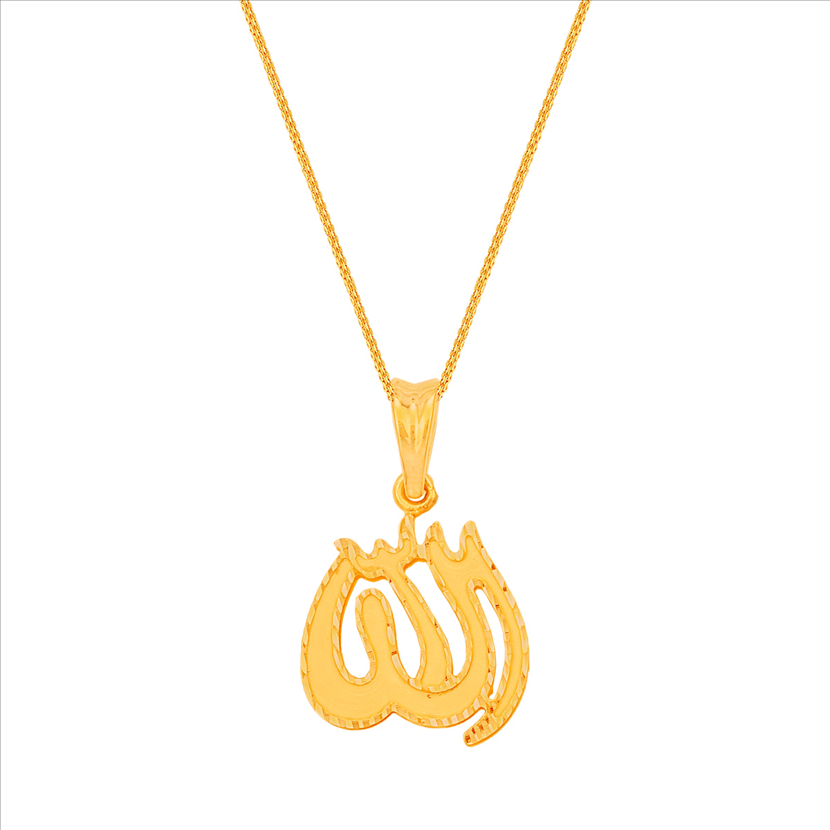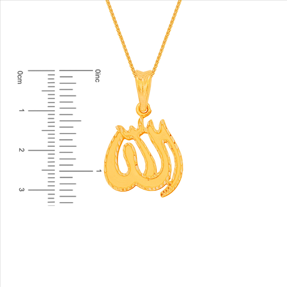 Enhance your collection with the exquisite Allah Pendant in 22K Gold delicately crafted by Malani Jeweler. This timeless piece is designed to transcend gender making it an ideal unisex jewelry option. The pendant's elegant yellow gold finish shines with a radiant glow perfect for any occasion. This captivating gold pendant measures 1.06 inches in length and 0.64 inches in width offering a sophisticated yet subtle statement. Its intricate design embodies a graceful blend of spirituality and artistry making it an extraordinary addition to any jewelry collection. Though the chain is not included this pendant harmonizes seamlessly with your preferred necklace. The hallmark of 22KT gold assures of its premium quality. Browse this remarkable pendant in our women's necklaces and pendants collection for a symbol of elegance and faith. Unveil the allure of Malani Jeweler's Allah Pendant where luxury meets spirituality.