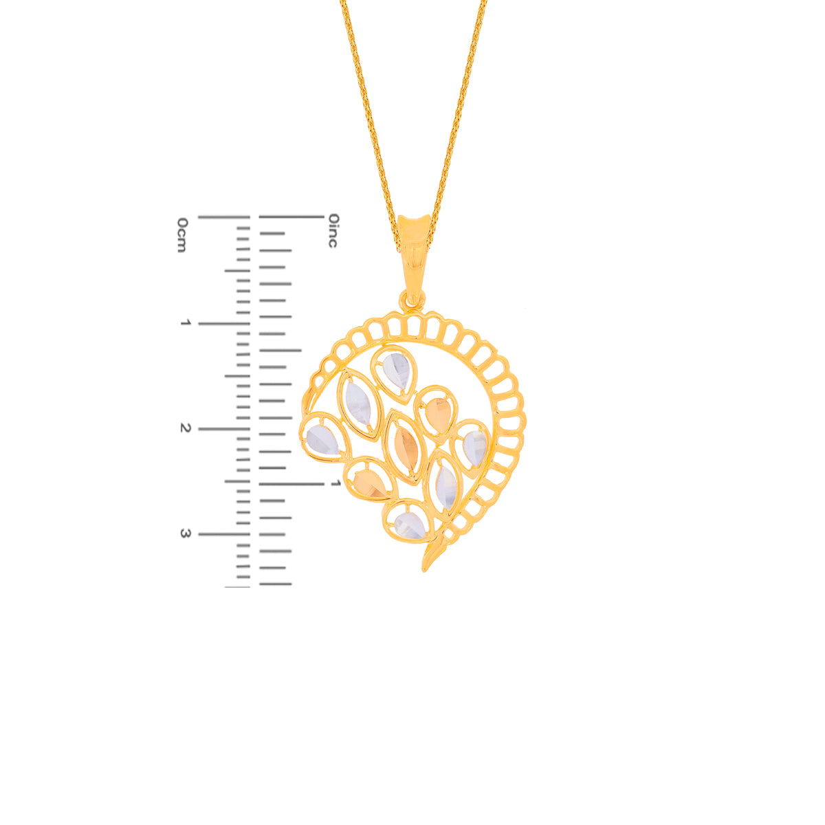 Introducing the exquisite Two Tone Pendant by Malani Jeweler crafted in radiant 22K gold. This captivating piece is designed for women who appreciate elegance and sophistication. The pendant showcases a remarkable two-tone finish blending the timeless allure of yellow gold with a modern twist making it an ideal accessory for any ensemble. Measuring 1.33 inches in length and 0.87 inches in width this pendant strikes the perfect balance between subtlety and statement-making. It boasts a sturdy yet delicate presence that complements various styles. Please note that the chain is not included with the pendant. This beautiful piece falls under the category of women's pendants and is part of the distinguished Women's Necklaces collection. With its intricate design and superior craftsmanship this pendant is a testament to Malani Jeweler's commitment to quality and artistry. A perfect addition to your jewelry collection or a thoughtful gift this two-tone pendant is a timeless treasure waiting to be cherished.