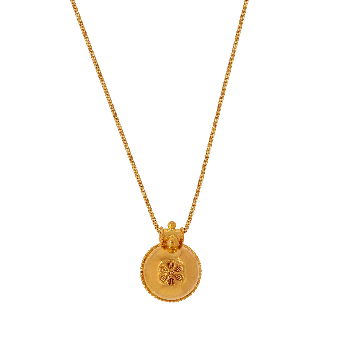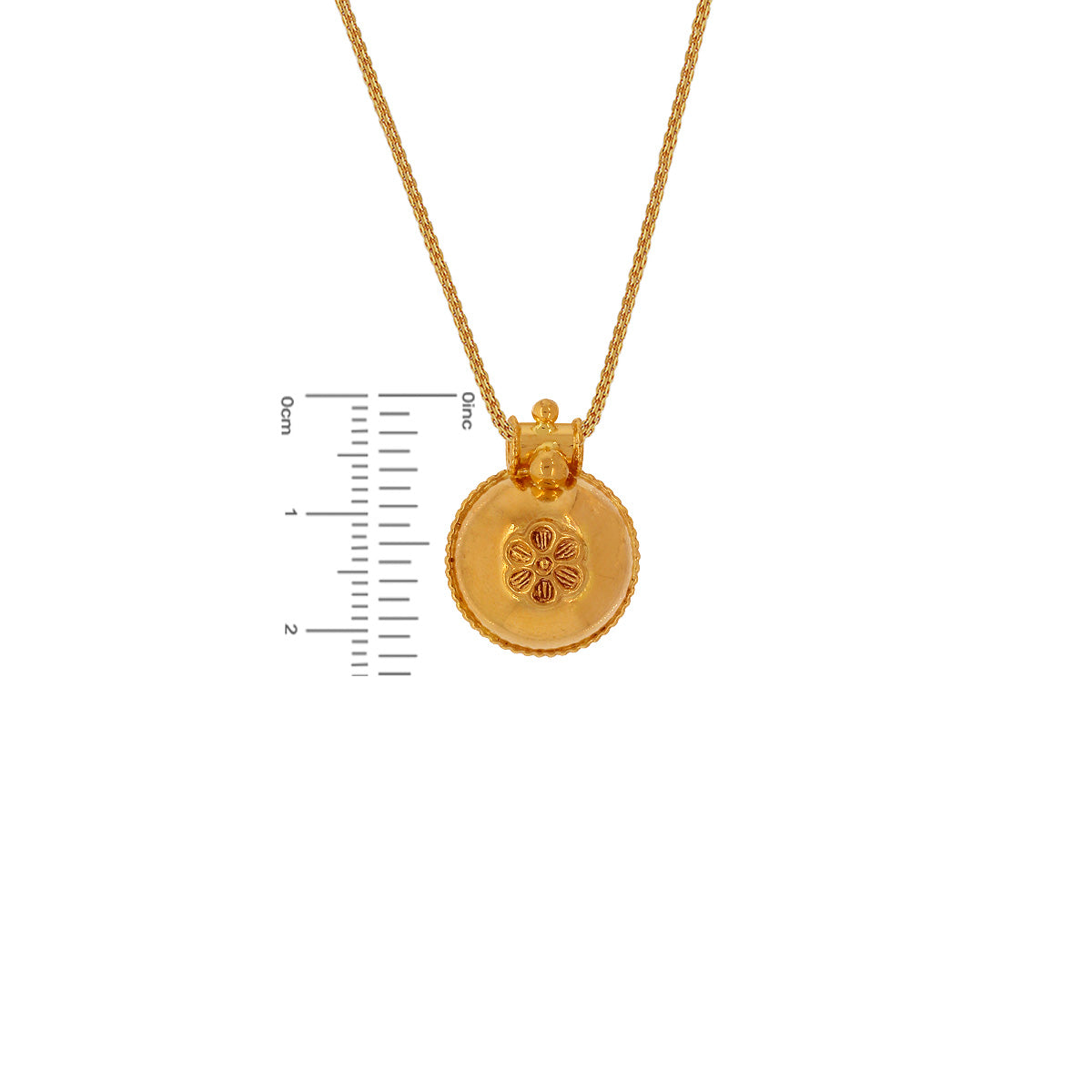 Elevate your elegance with the exquisite Hand-crafted Thali Pendant by Malani Jeweler crafted in lustrous 22K yellow gold. Designed exclusively for women this pendant seamlessly combines traditional craftsmanship with contemporary style. Measuring 0.83 inches in length and 0.6 inches in width it sits gracefully on the neckline making it a versatile accessory for any occasion. This beautifully finished pendant adds a touch of sophistication and charm to your ensemble. Although the chain is not included this versatile piece pairs effortlessly with any chain of your choice. As part of our premium Women's Necklace collection the Thali Pendant is a must-have addition to your jewelry collection. Experience the allure of 22K gold pendants with Malani Jeweler.