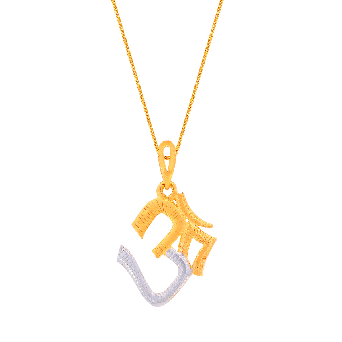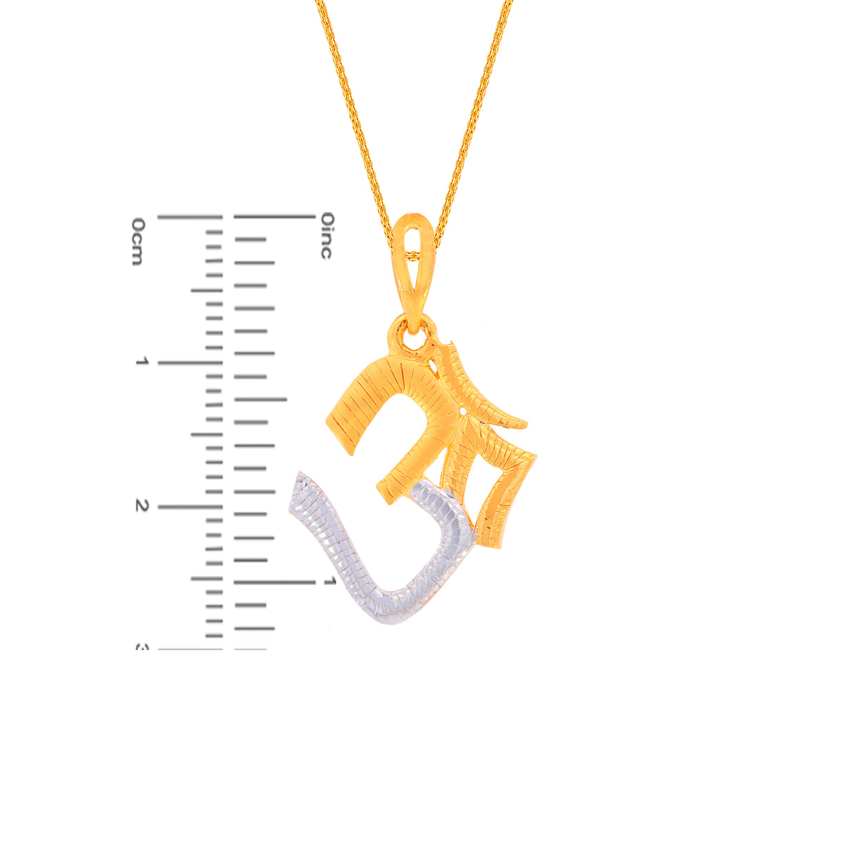 Introducing the exquisite Om Two Tone Pendant by Malani Jeweler a perfect blend of spirituality and elegance crafted in 22K gold. This stunning pendant designed specifically for men embodies sophistication and style. With a sleek two-tone finish it offers a striking visual contrast that highlights its intricate Om motif making it a meaningful addition to any jewelry collection. This gold pendant measures a length of 1.1 inches and a width of 0.61 inches crafted with precision and attention to detail for a premium finish. It's light weight yet durable perfect for everyday wear or special occasions. Though it does not include a chain in the price this versatile pendant can be paired with various chain styles to create a personalized look. The quality and craftsmanship speak volumes. Exclusively designed by Malani Jeweler this pendant is a timeless piece that embodies tradition and modernity adding a touch of elegance to your ensemble.
