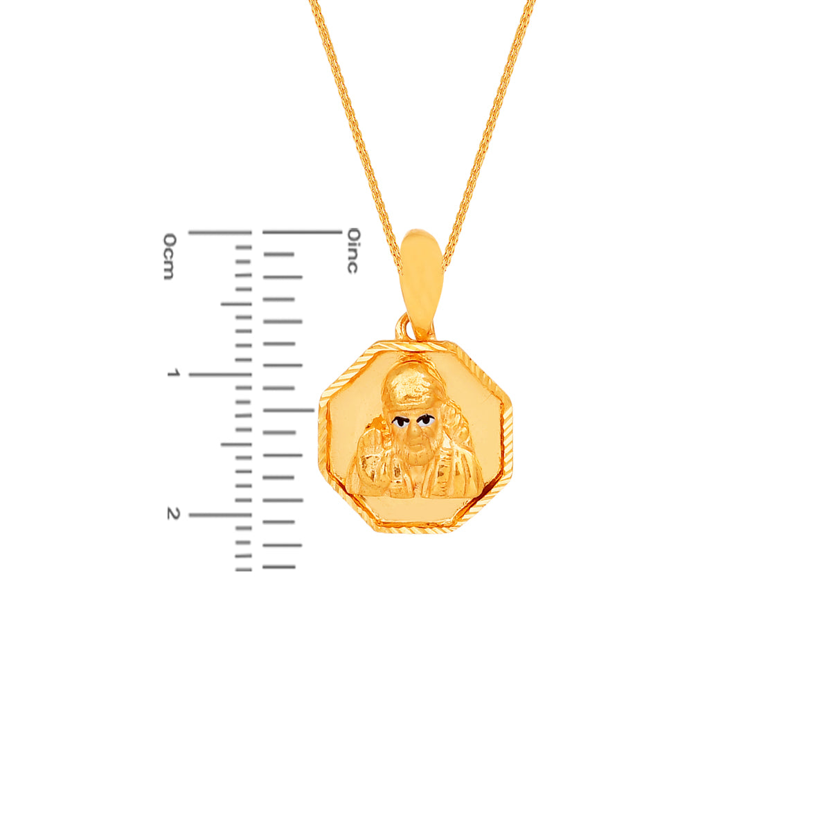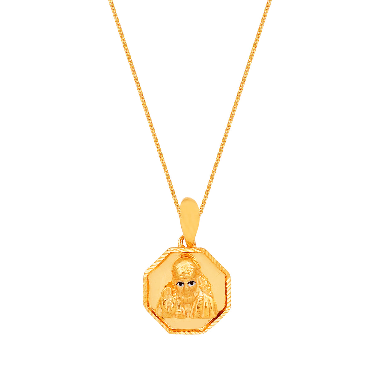 Discover the exquisite Sai Baba Minakari Pendant by Malani Jeweler a stunning unisex accessory crafted in 22k gold. This elegant pendant is perfect for those who appreciate fine craftsmanship and spiritual symbolism. Featuring a distinctive minakari finish the pendant beautifully captures the essence of Sai Baba making it a meaningful addition to any jewelry collection. With dimensions measuring 0.81 inches in length and 0.49 inches in width this gold pendant balances subtlety and significance ideal for daily wear or special occasions. Although not sold with a chain it offers versatility to complement your favorite necklace. Finished in a captivating yellow hue this pendant is a testament to Malani Jeweler's dedication to quality and design.