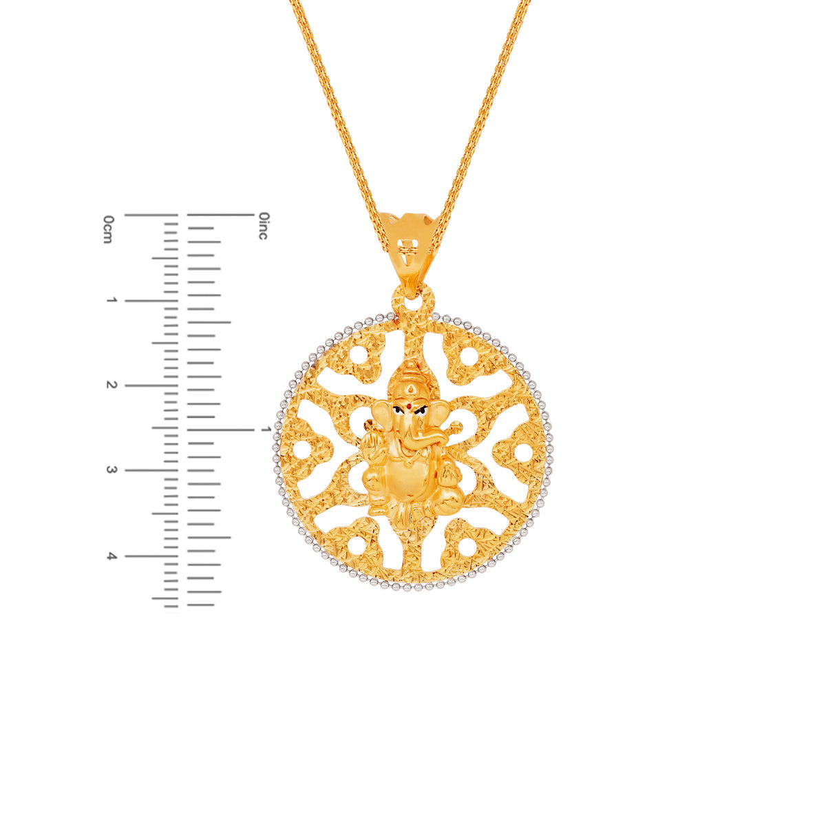 Elevate your jewelry collection with the exquisite Ganesha Minakari Pendant by Malani Jeweler meticulously crafted in 22K gold. This stunning pendant features a Minakari finish that highlights the divine intricacies of the Ganesha design. Perfectly sized for an elegant statement it measures 1.75 inches in length and 1.3 inches in width making it a standout piece for any occasion. It offers the perfect balance of elegance and durability. Designed for men but appealing to all who appreciate fine craftsmanship this gold pendant is a symbol of sophistication. Please note that the chain is not included in the price. Its striking yellow color complements any ensemble whether for a formal event or every day wear. Discover the divine charm and enhance your spiritual connection with this extraordinary Ganesha pendant exclusively by Malani Jeweler.