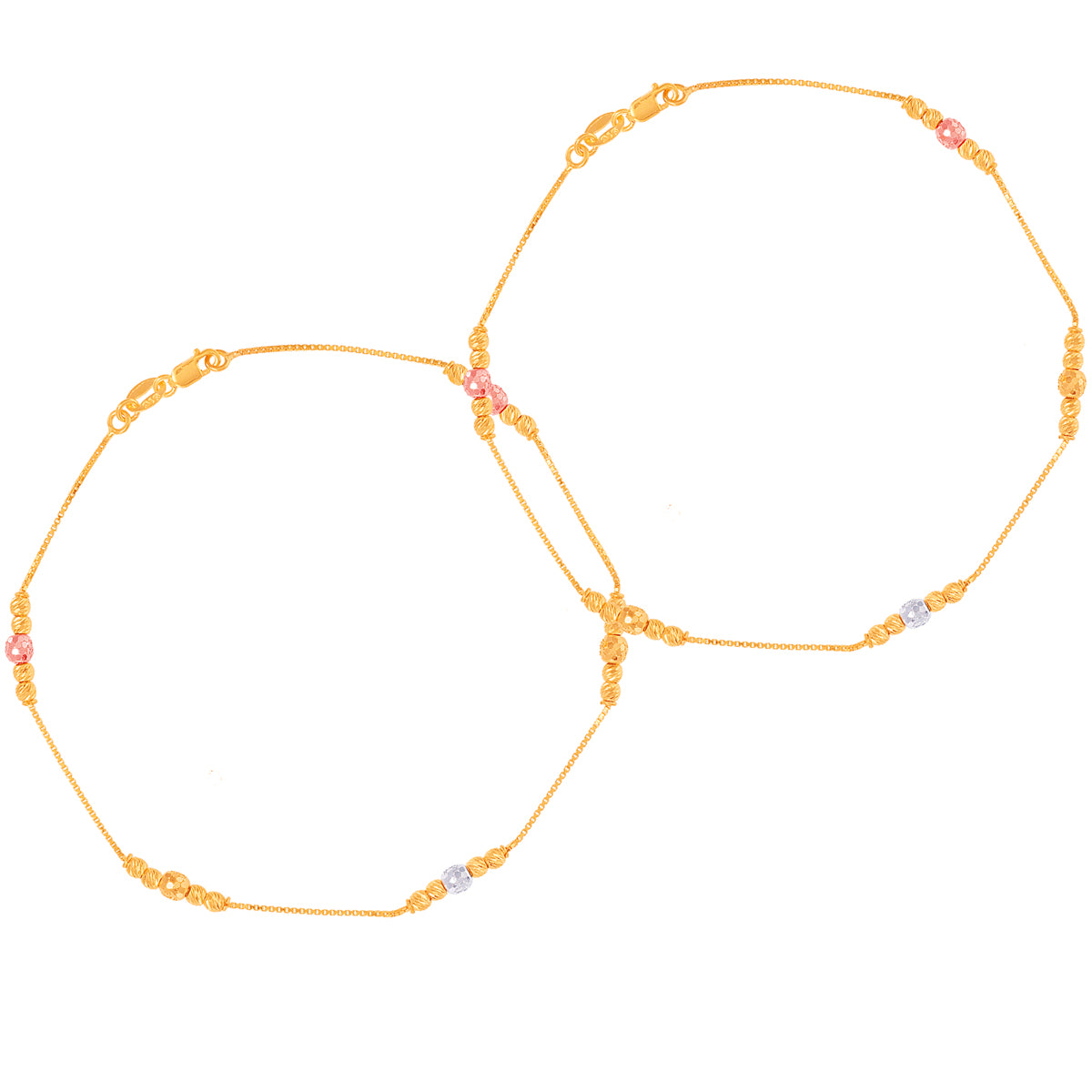 Brilliant Three tone 2pcs Payal in 22K Gold