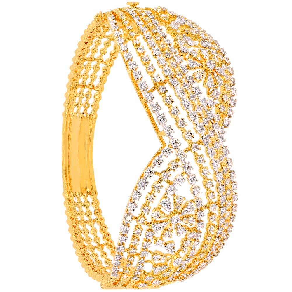 Opulent Three tone Openable Bangle Bracelet in 18K Gold