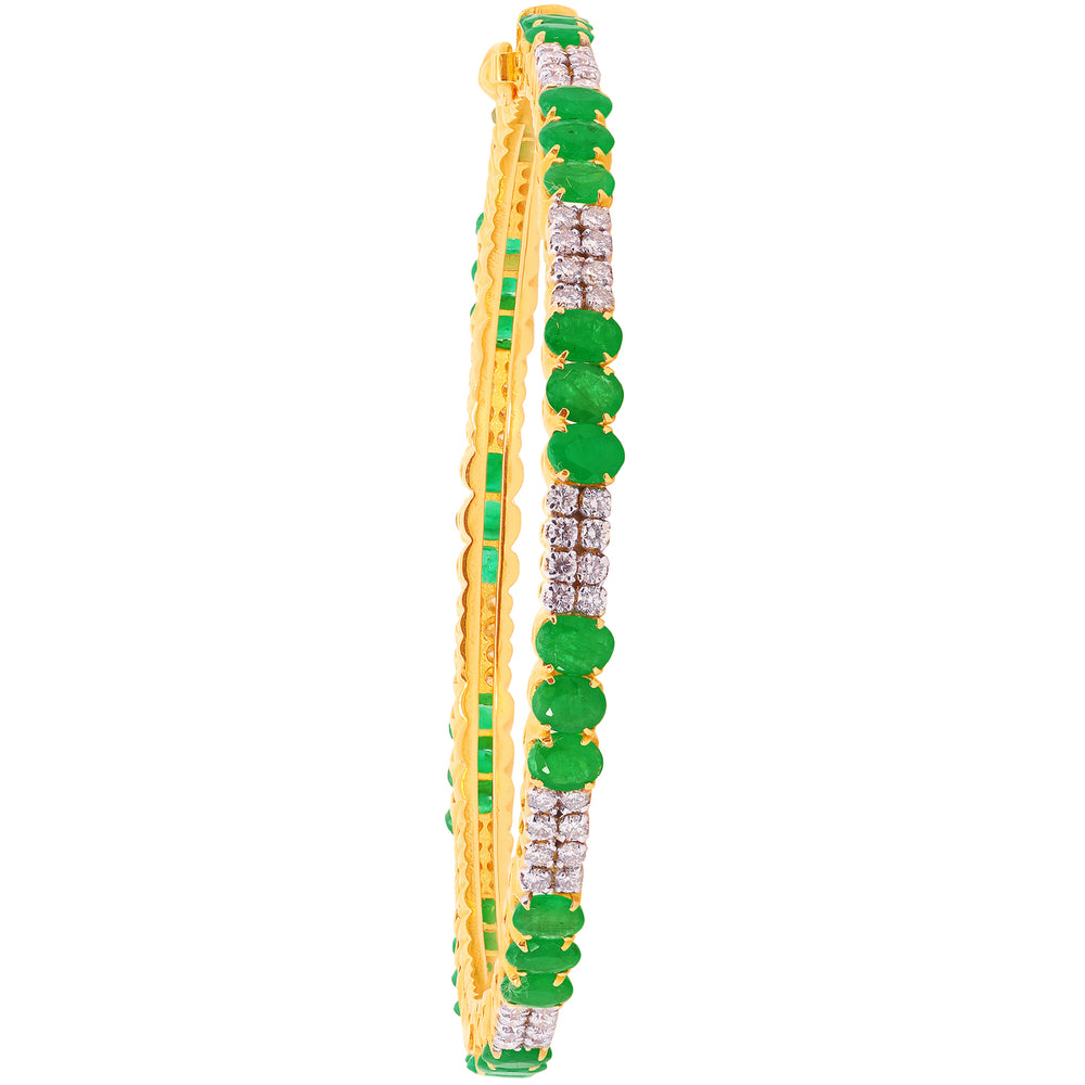 3.75Ct VS/GH Diamond 2pcs Bangle With Emerald in 18K Gold