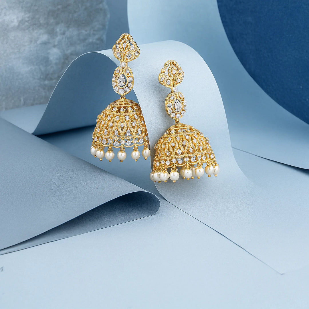Mesmerizing Earrings With CZ & Pearl in 22K Gold