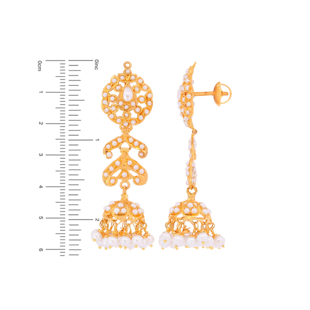 Exquisite Jhumkha With Pearl & CZ in 22K Gold
