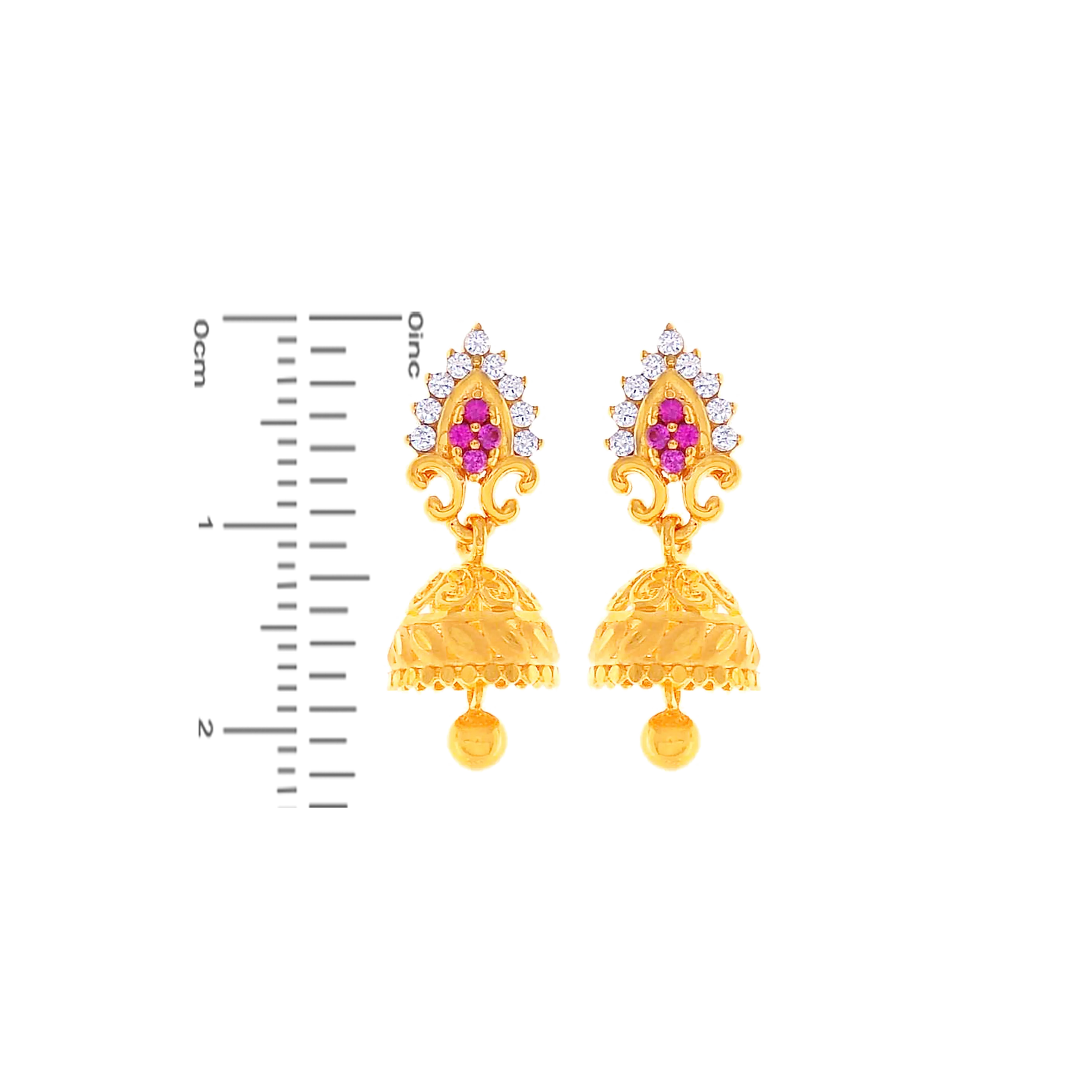 Gorgeous Earrings With CZ & Gemstones in 22K Gold