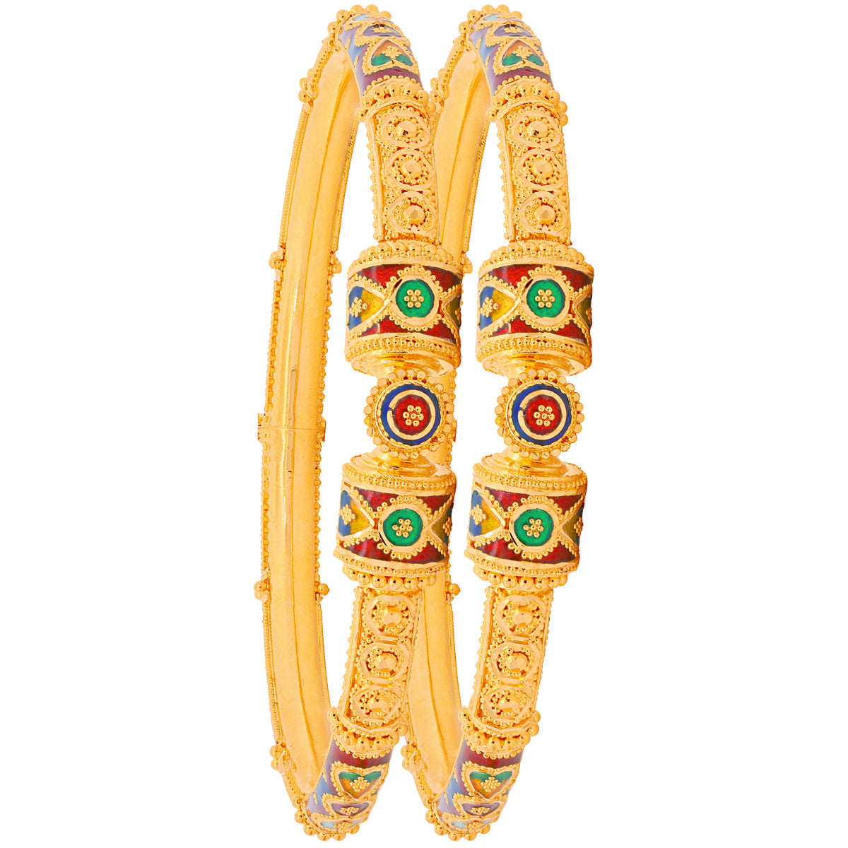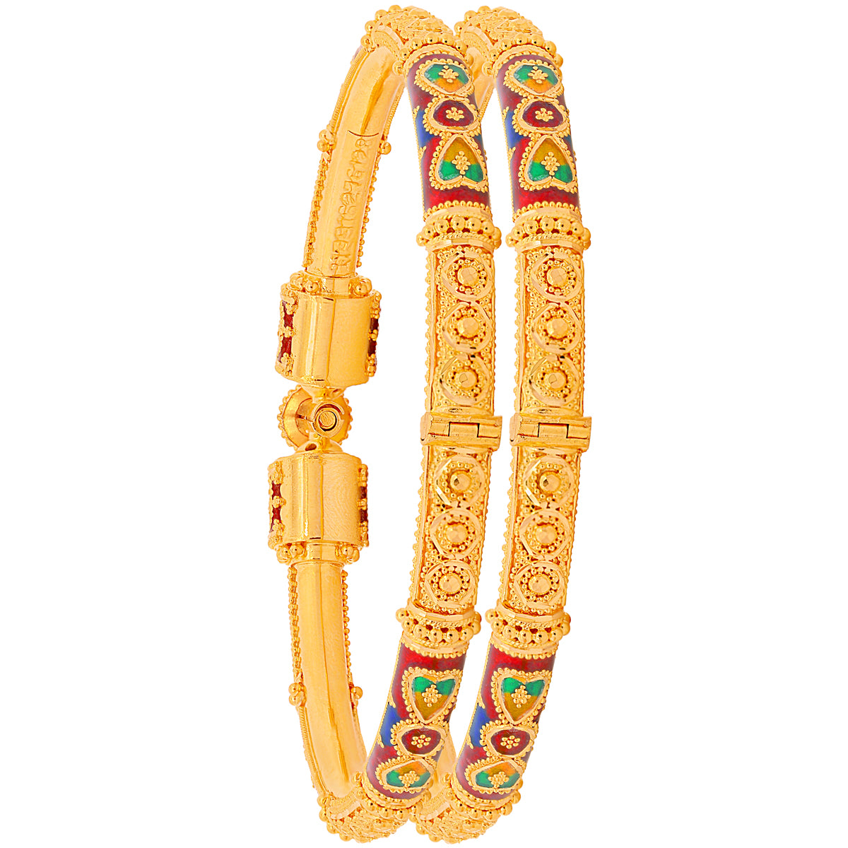 Alluring Minakari Pipe Openable 2pcs Kara in 22K Gold