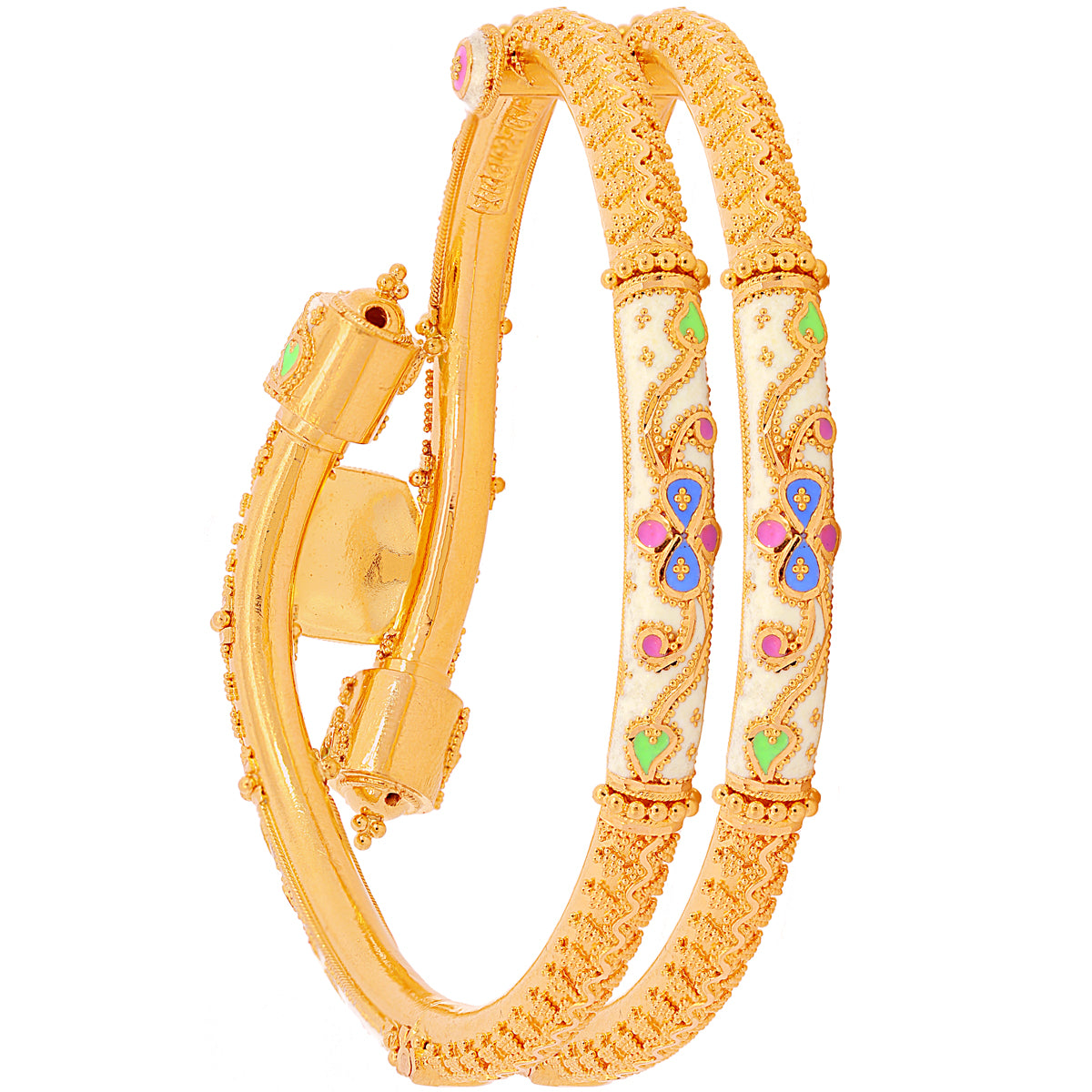 Alluring Minakari Pipe Openable 2pcs Kara in 22K Gold