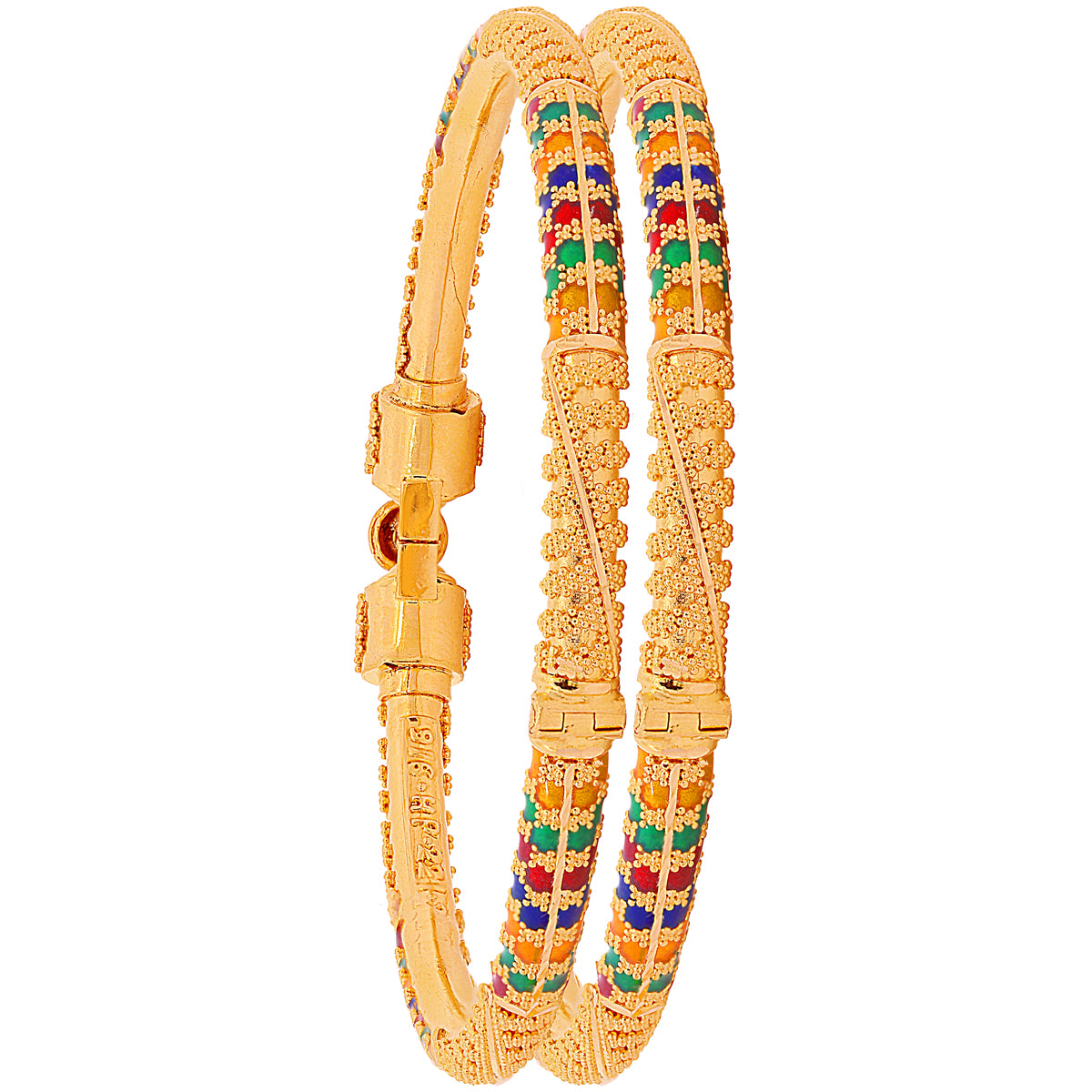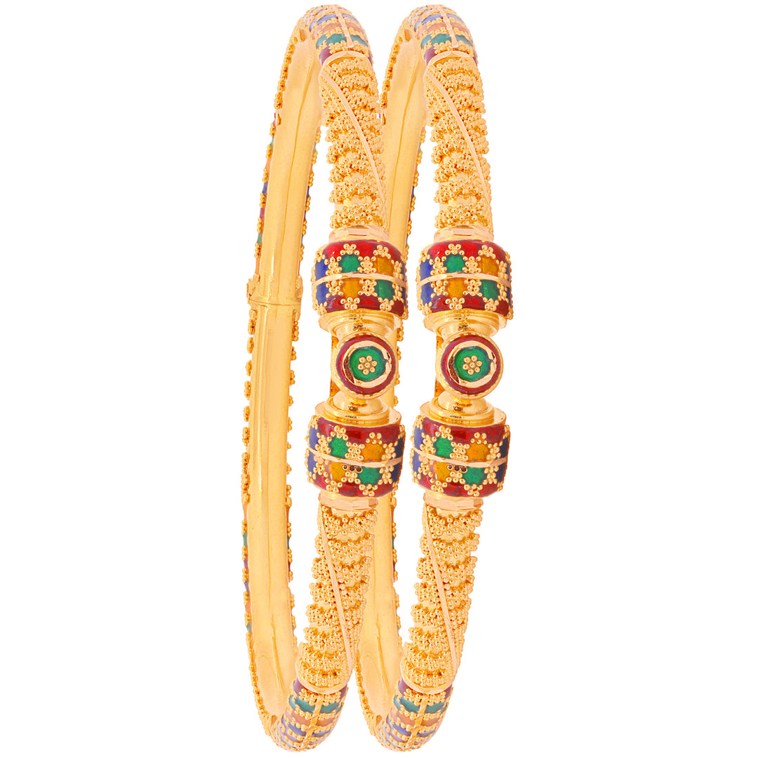 Alluring Minakari Pipe Openable 2pcs Kara in 22K Gold