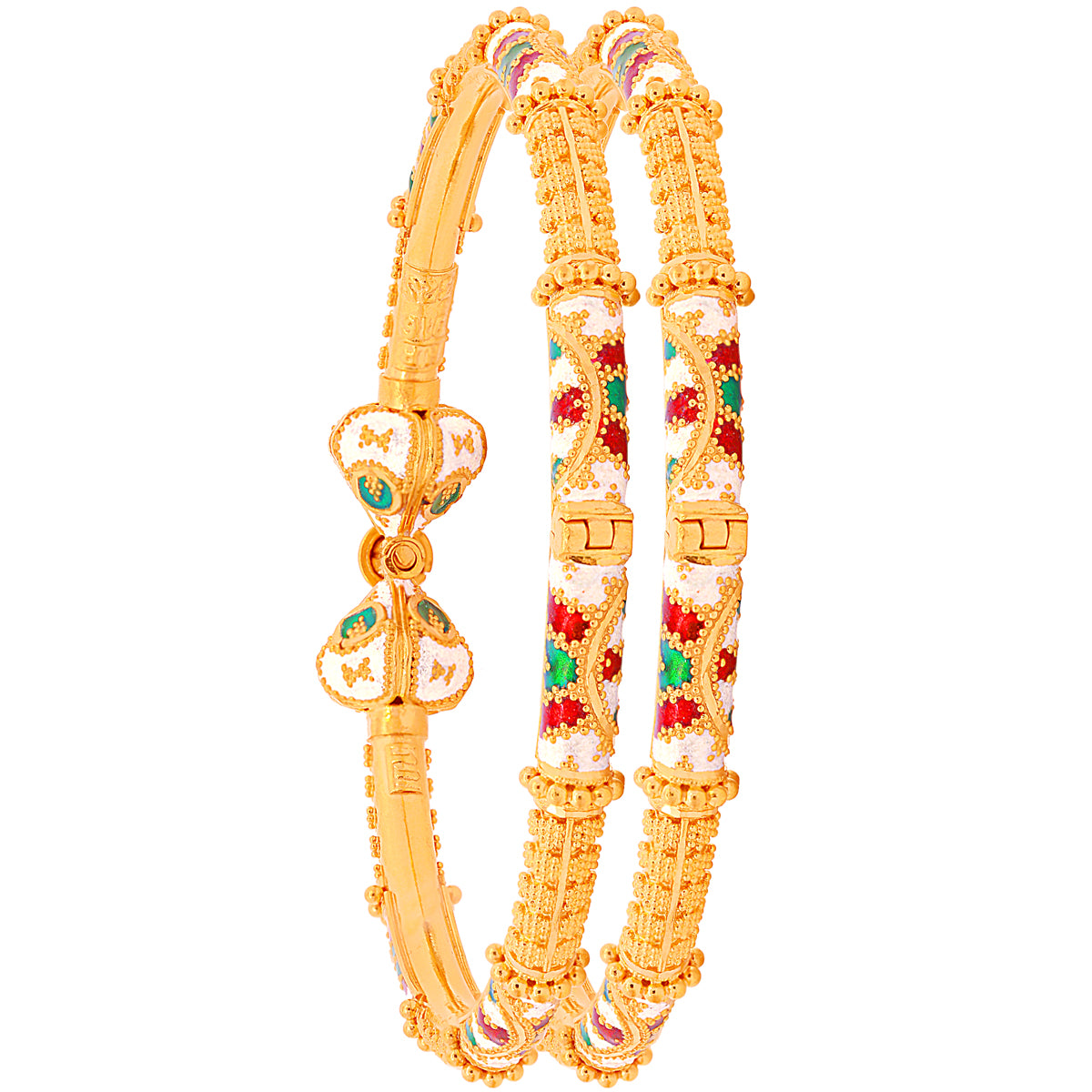 Brilliant Minakari Pipe Openable 2pcs Kara in 22K Gold