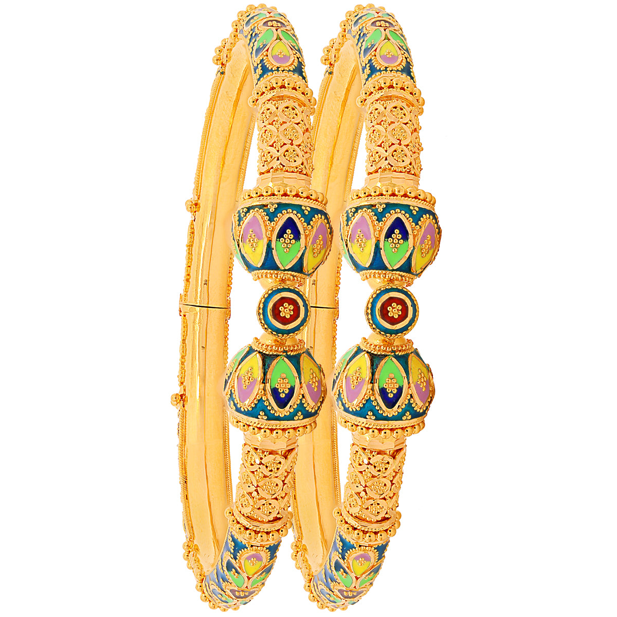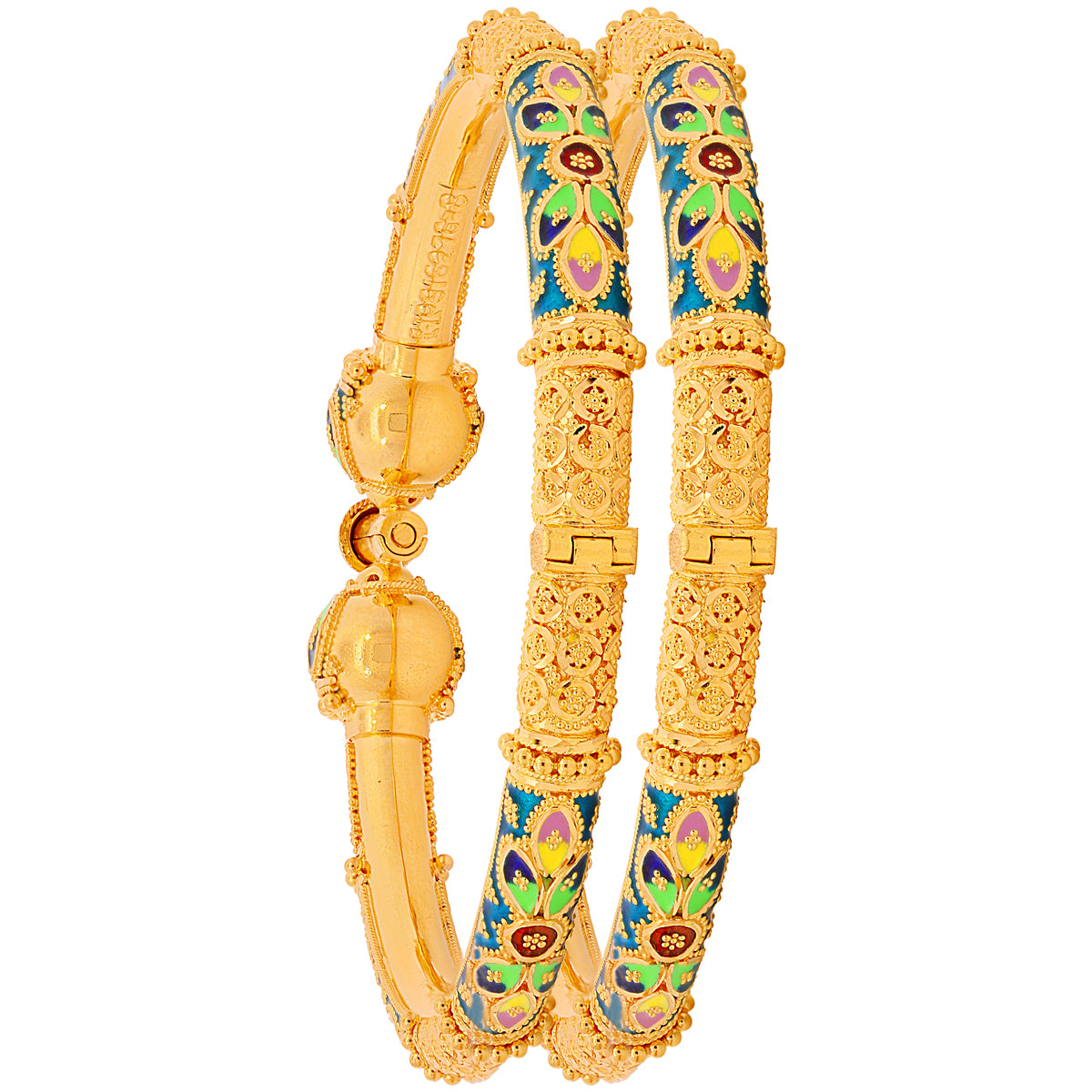 Captivating Minakari Pipe Openable 2pcs Kara in 22K Gold