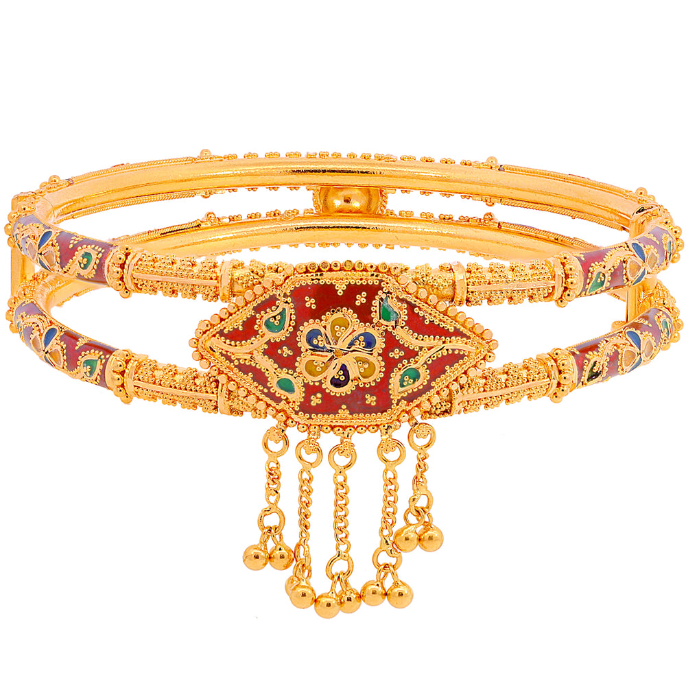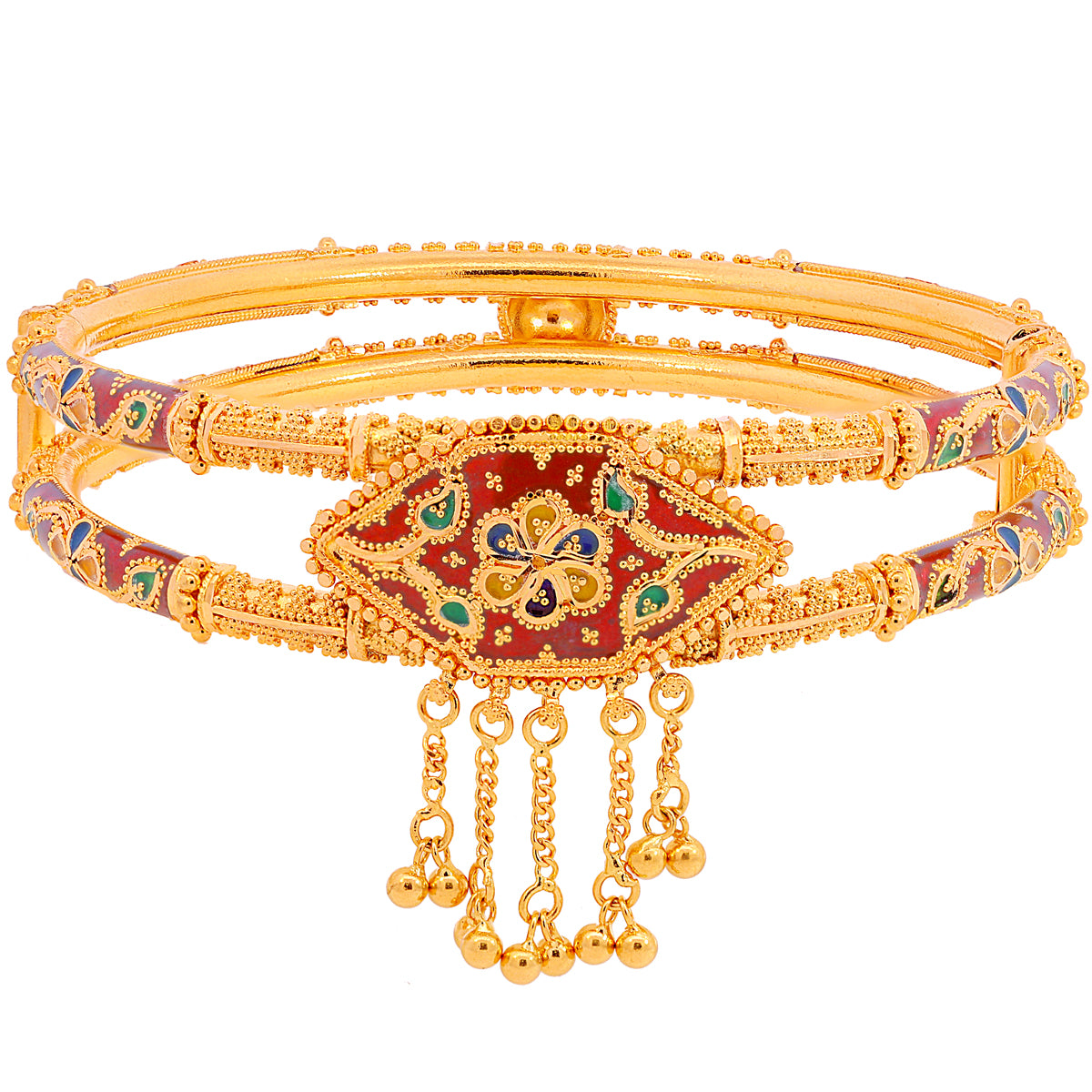 Captivating Minakari Pipe Openable 2pcs Kara in 22K Gold