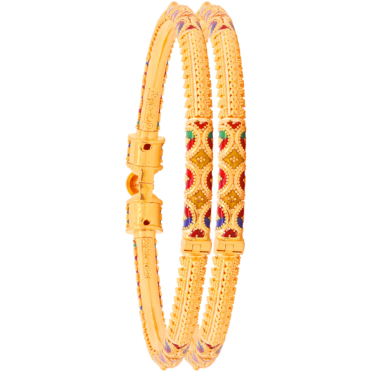 Captivating Minakari Pipe Openable 2pcs Kara in 22K Gold