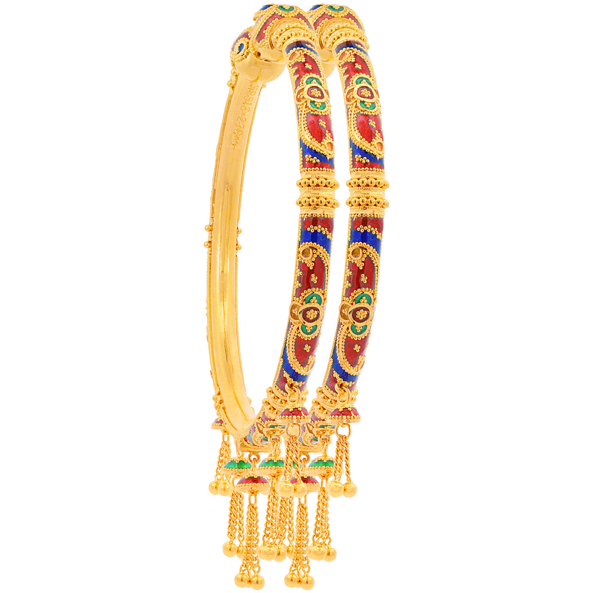 Endearing Minakari Pipe Openable 2pcs Kara in 22K Gold