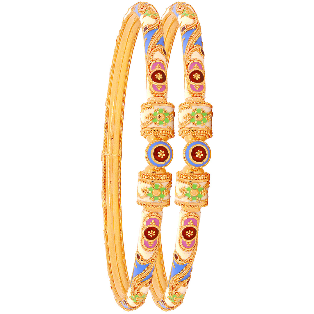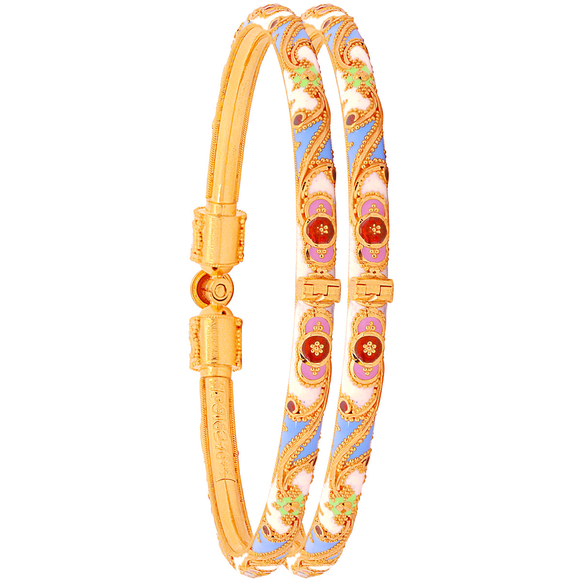 Fascinating Minakari Pipe Openable 2pcs Kara in 22K Gold