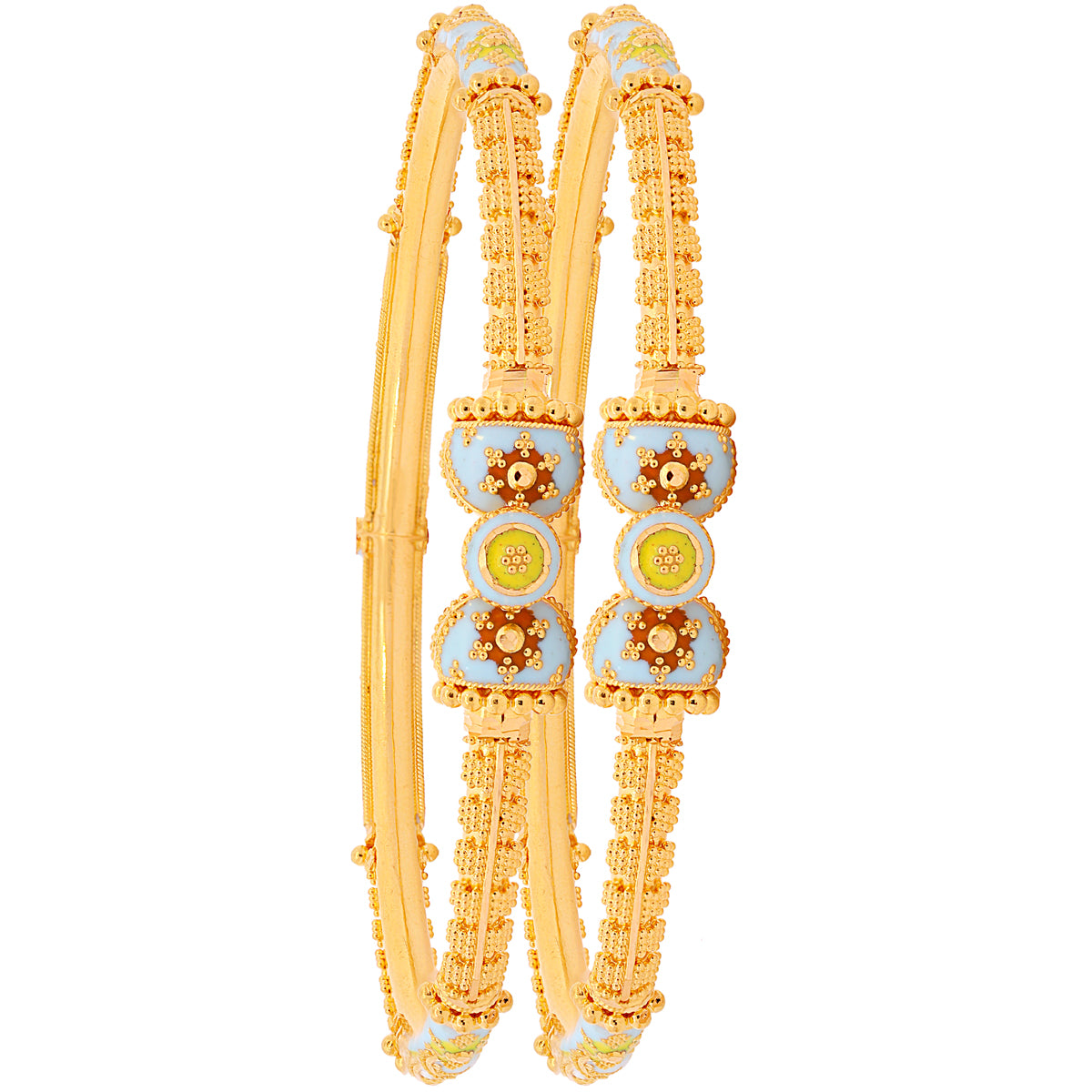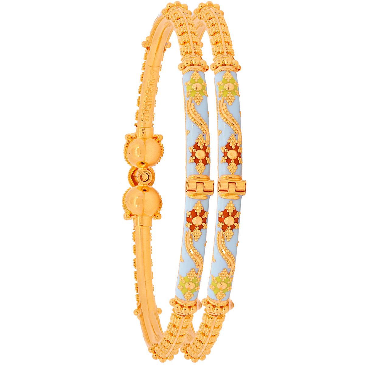 Fascinating Minakari Pipe Openable 2pcs Kara in 22K Gold