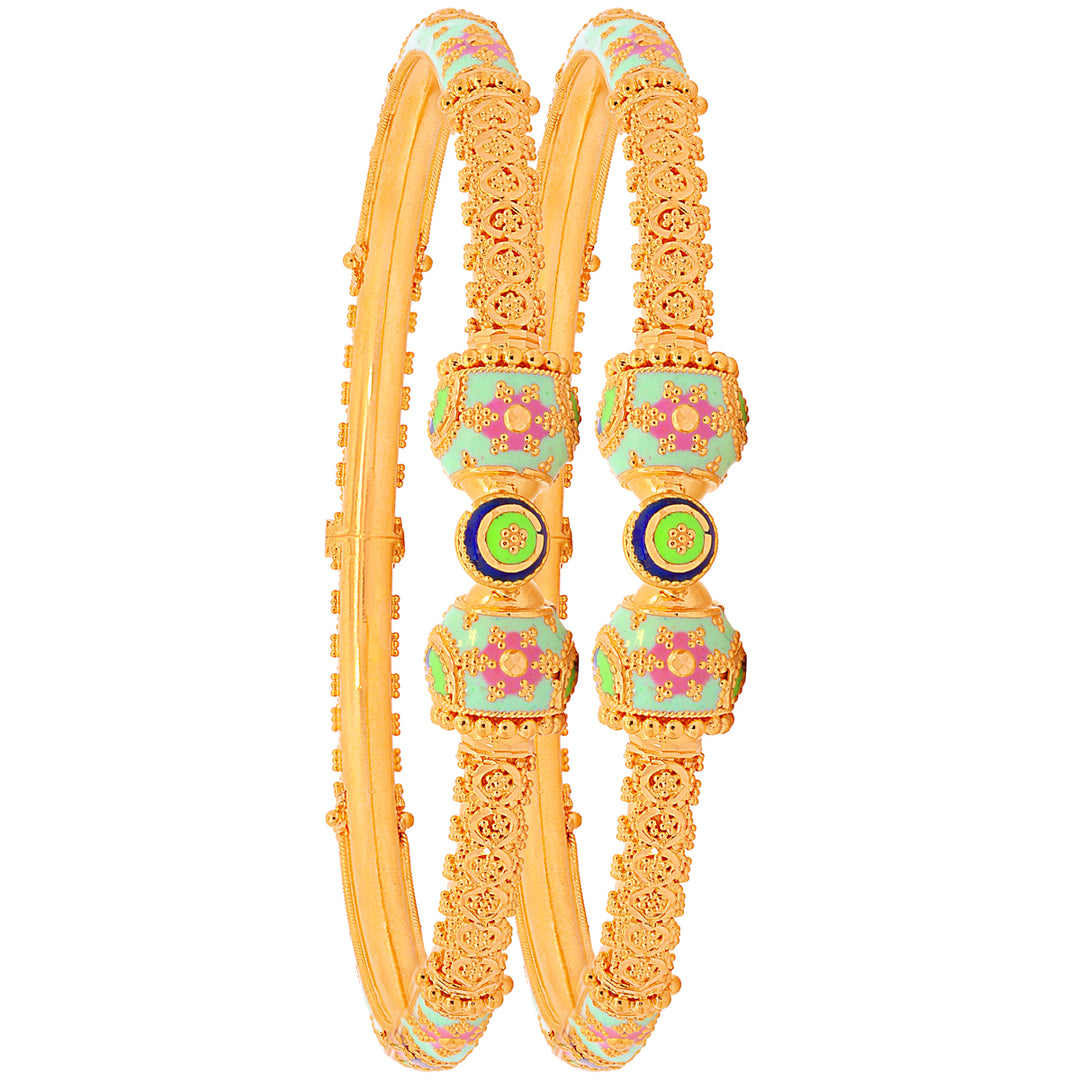 Glamorous Minakari Pipe Openable 2pcs Kara in 22K Gold
