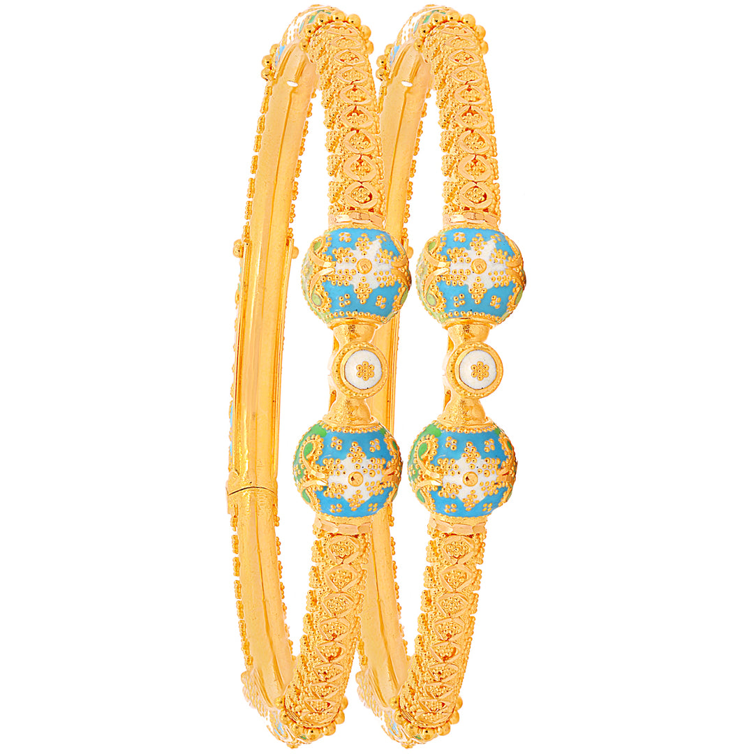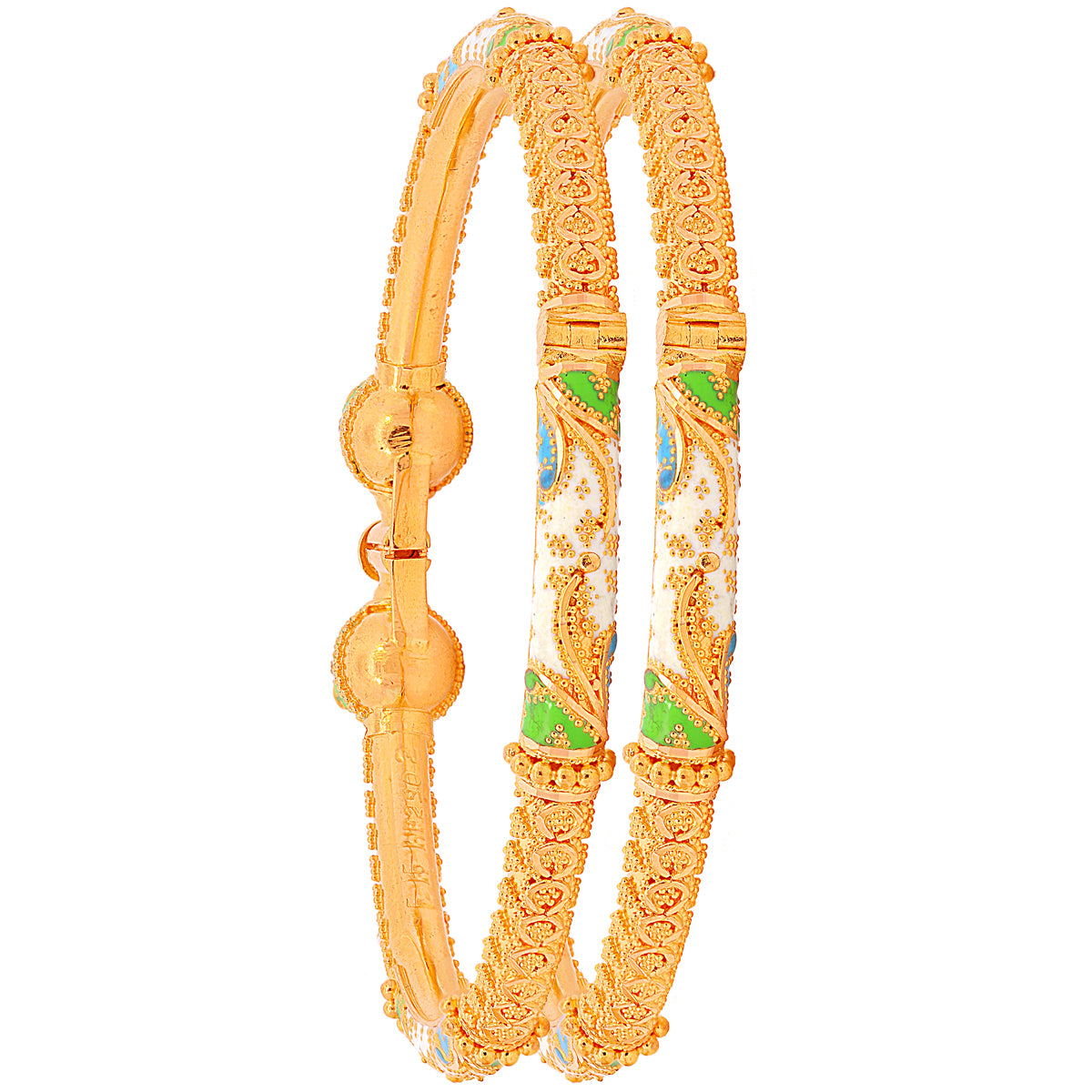 Intricate Minakari Pipe Openable 2pcs Kara in 22K Gold
