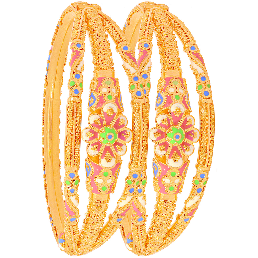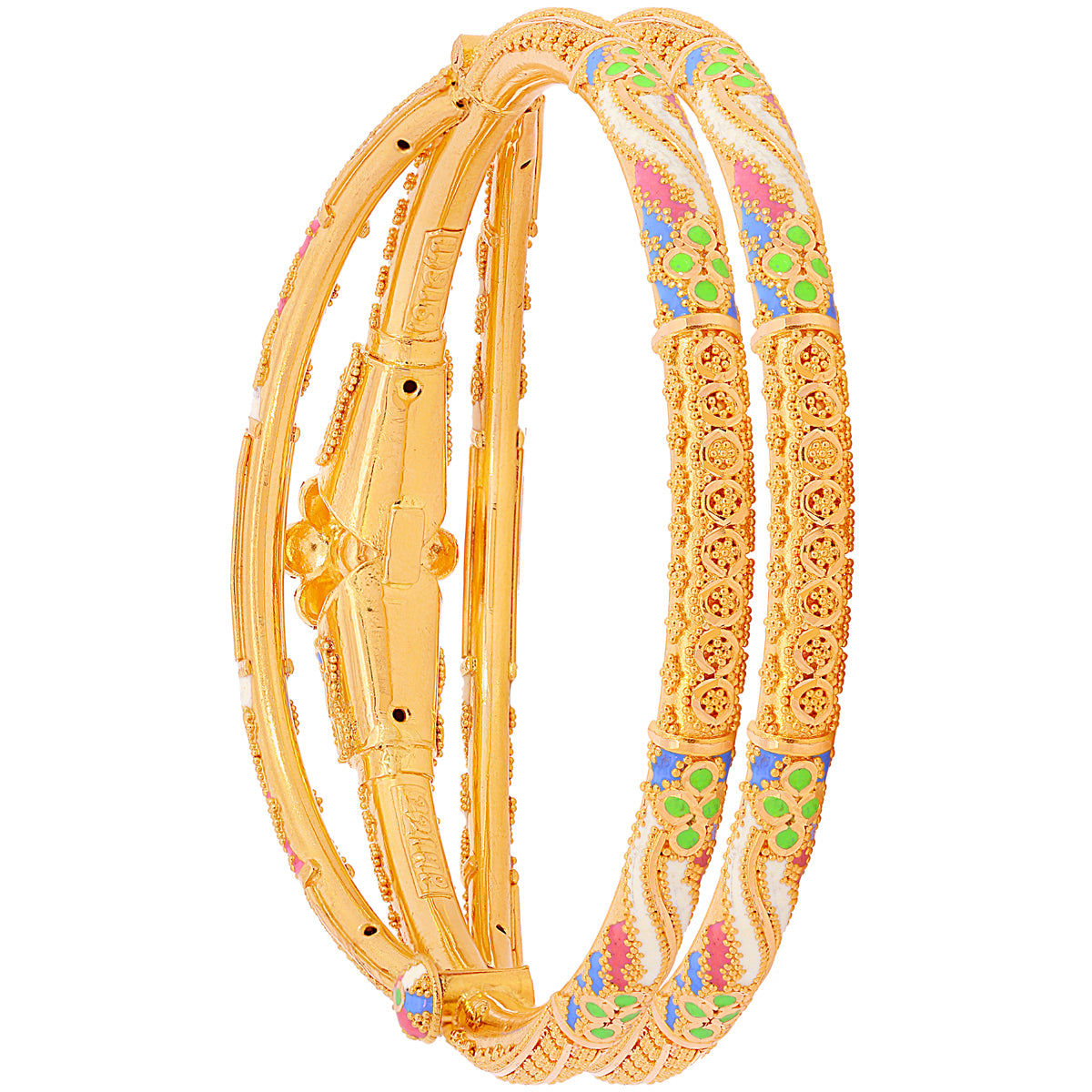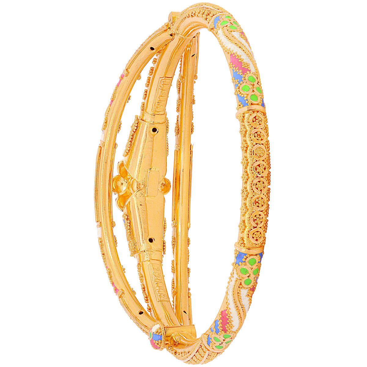 Lovely Minakari Pipe Openable 2pcs Kara in 22K Gold