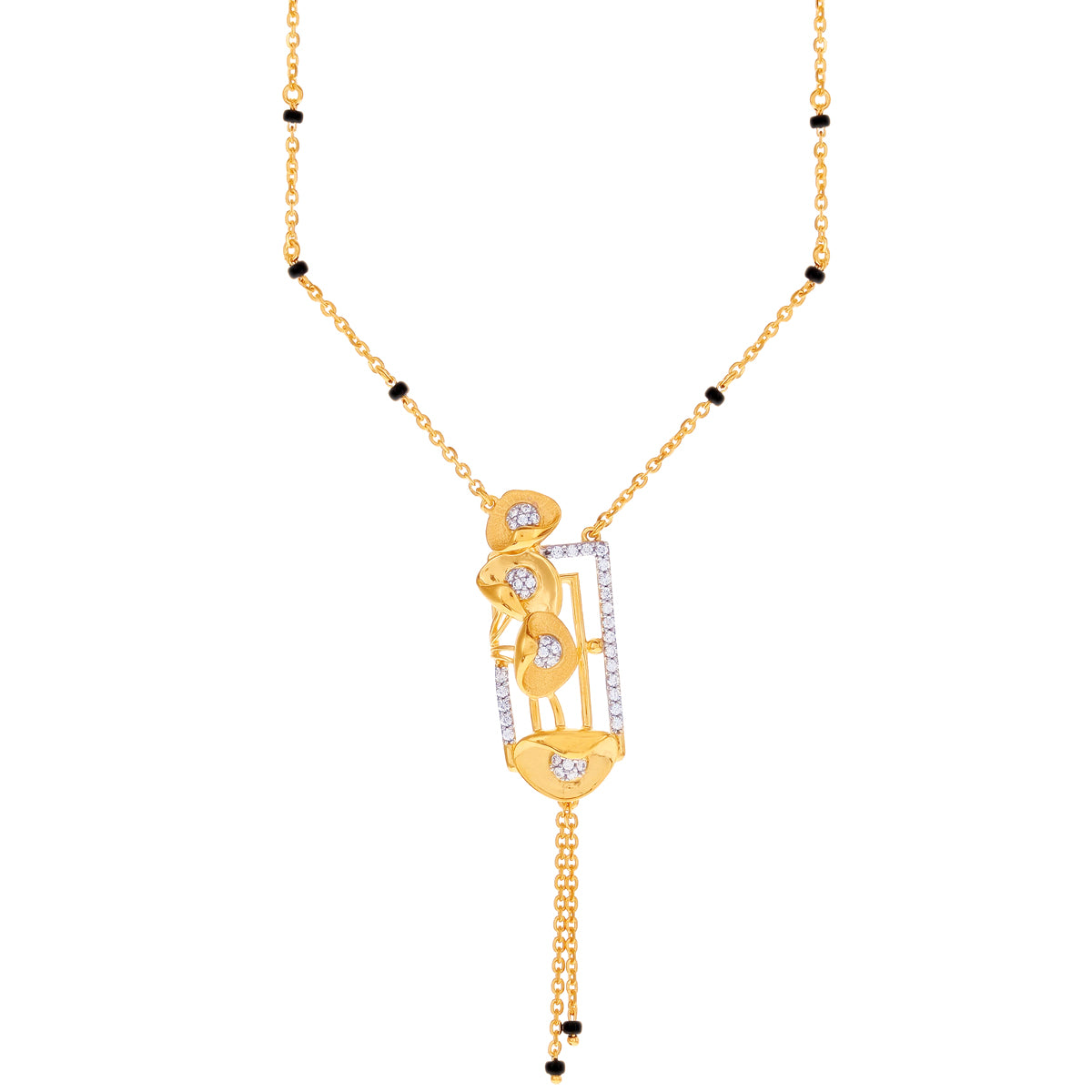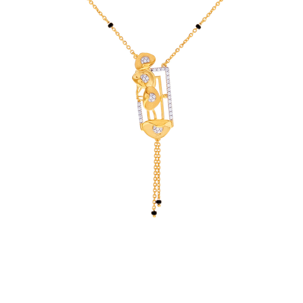 Introducing the exquisite Brilliant Mangalsutra with CZ by Malani Jeweler a stunning piece crafted with precision and elegance in 22K gold. This elegant necklace is designed specifically for women who appreciate timeless beauty and intricate craftsmanship. As a part of our prestigious women's Mangalsutras collection this piece boasts a radiant yellow finish adding a touch of luxury and sophistication to any ensemble. The mangalsutra measures 16 inches in length and 0.08 inches in width making it a perfect fit for everyday wear while the striking pendant adds a distinctive flair measuring 2.36 inches in length and 0.54 inches in width. With an overall weight of 9.6 grams this piece is both lightweight and comfortable ensuring that you can adorn it effortlessly on any occasion. Whether you're seeking a traditional symbol of commitment or a beautiful accessory the Brilliant Mangalsutra with CZ is an ideal choice. Experience the unmatched quality and elegance that only Malani Jeweler can provide.